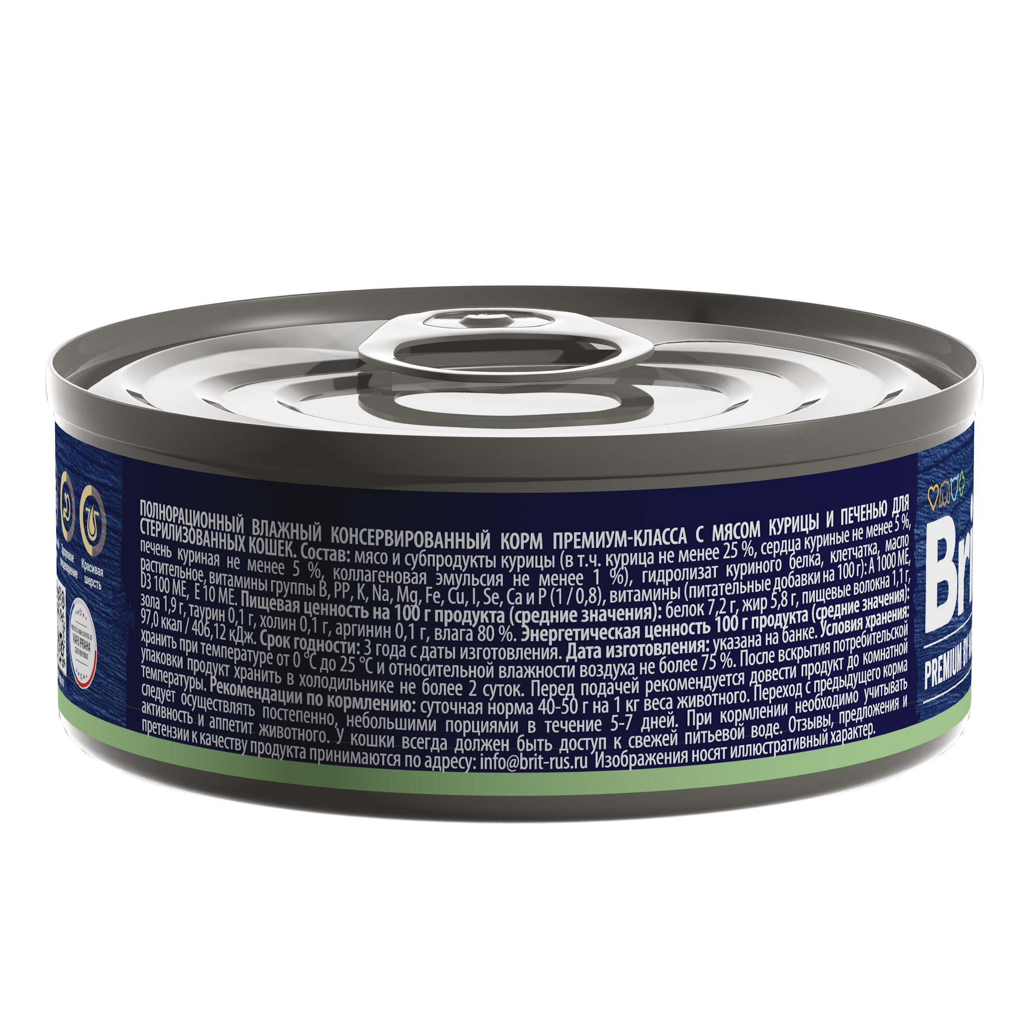 BRIT PREMIUM BY NATURE, Консервы с мясом курицы и печенью для стерилизованных кошек, 100г, 5051281