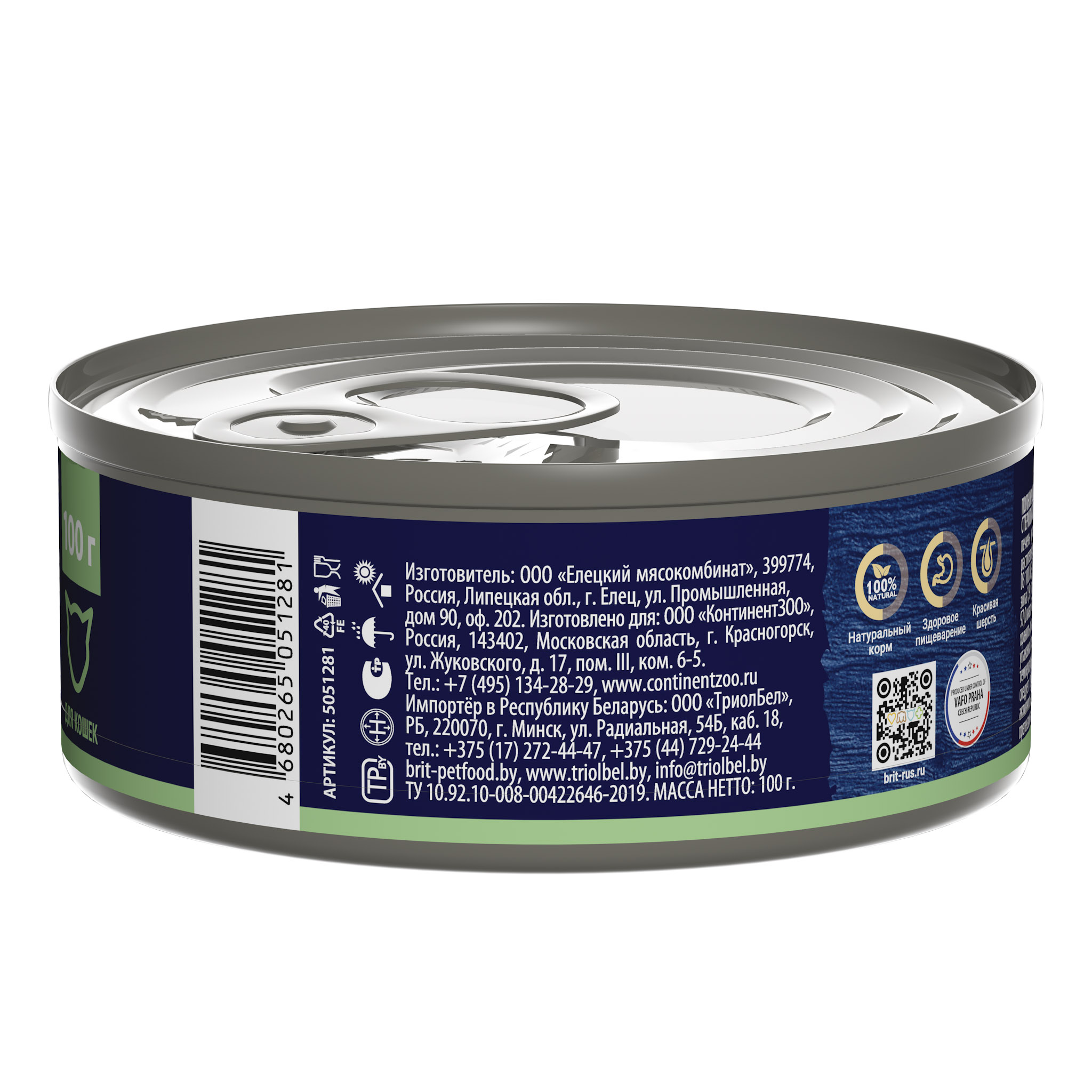 Состав: Мясо и субпродукты курицы (в т.ч. курица не менее 25 %, сердца куриные не менее 5 %, печень куриная не менее 5 %, коллагеновая эмульсия не менее 1 %), гидролизат куриного белка, клетчатка, масло растительное, Витамины группы B, Калий (K), Натрий (Na), Магний (Mg), Железо (Fe), Медь (Cu), Йод (I), Селен (Se), Кальций (Ca) и Фосфор (P) (1 / 0,8), Витамины (питательные добавки на 100 г): А 1000 МЕ, D3100 ME, Е 10 МЕ.