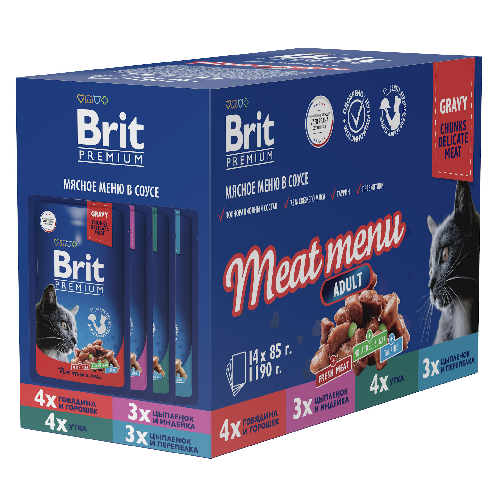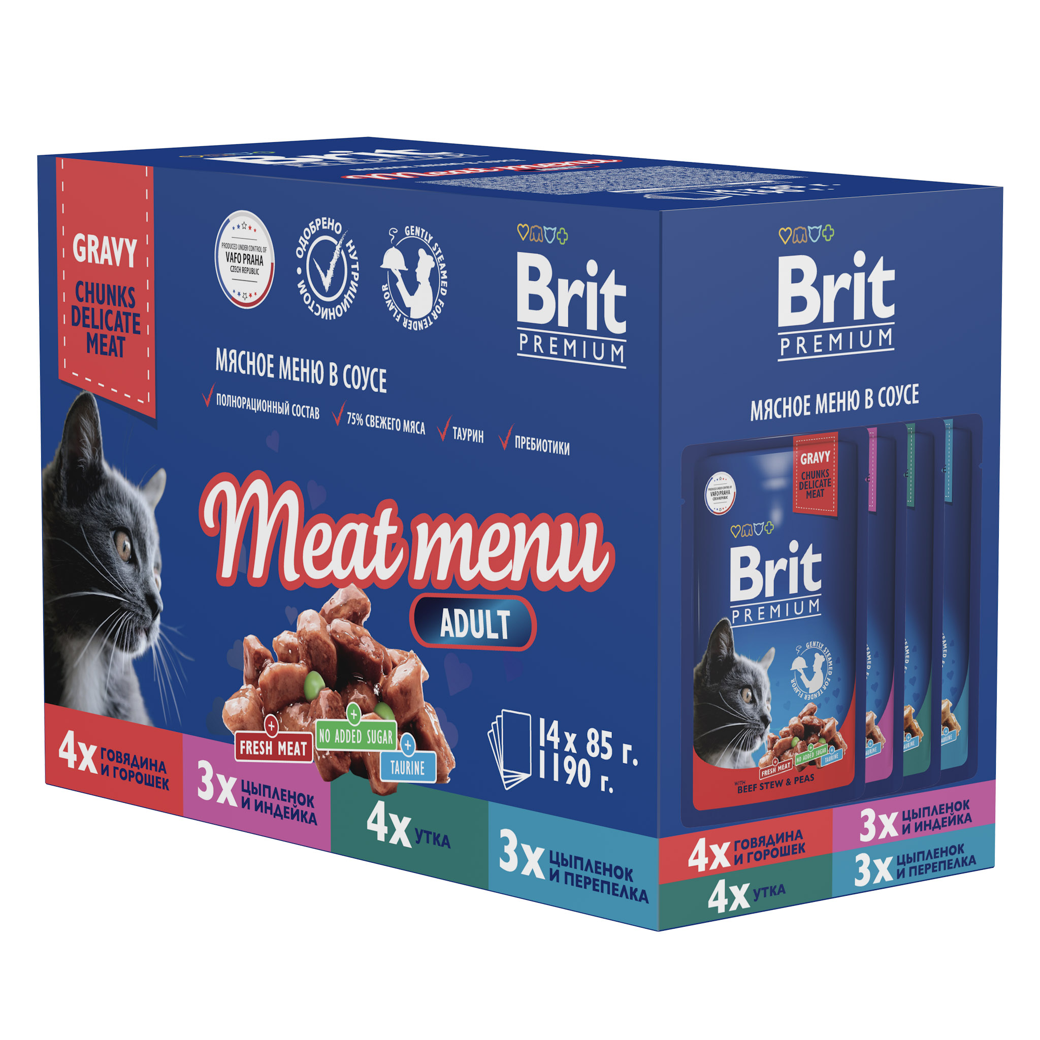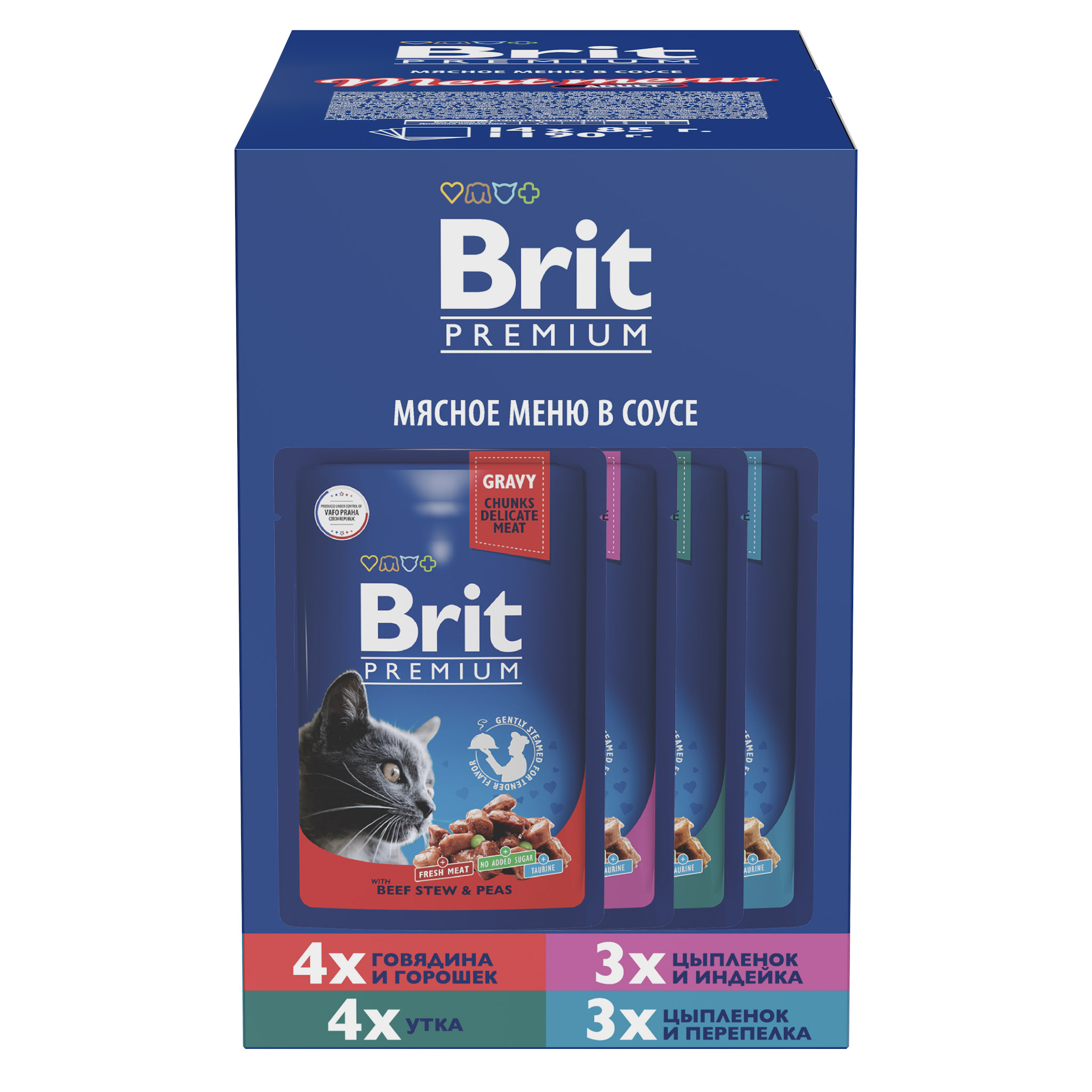 BRIT PREMIUM, Набор паучей для кошек, Мясное меню в соусе, 14 шт х 85г, 5055029