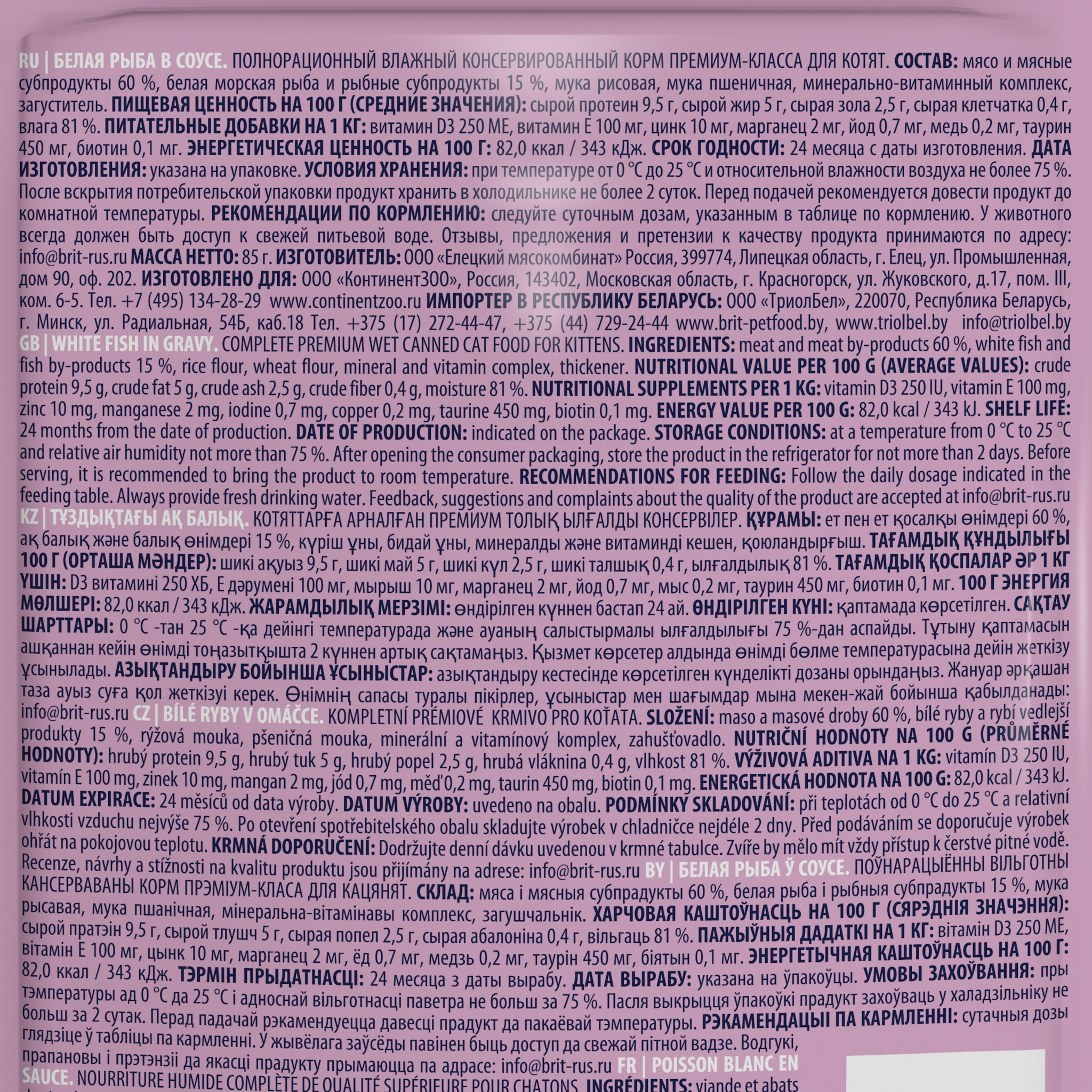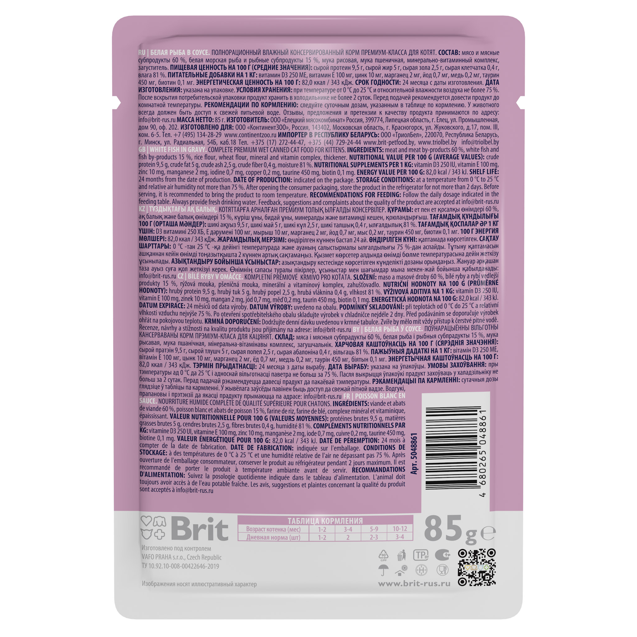 BRIT PREMIUM, Пауч для котят, Белая рыба в соусе, 85г, 5048861