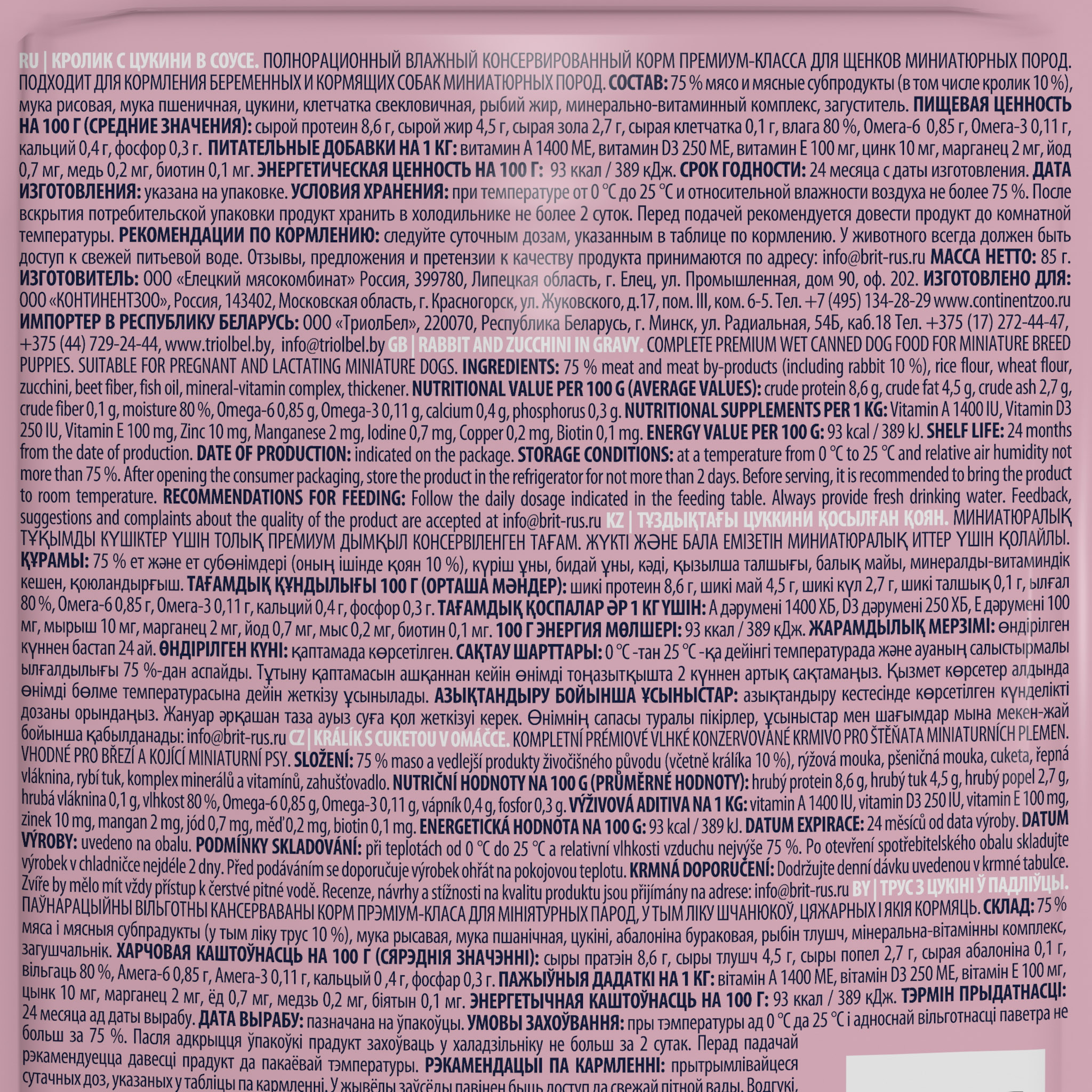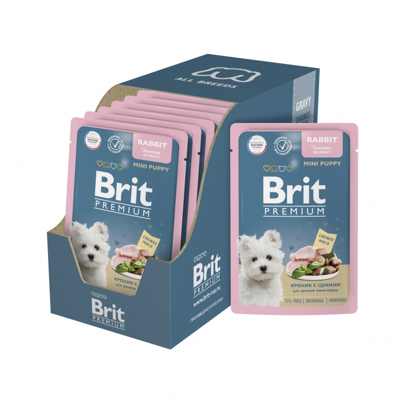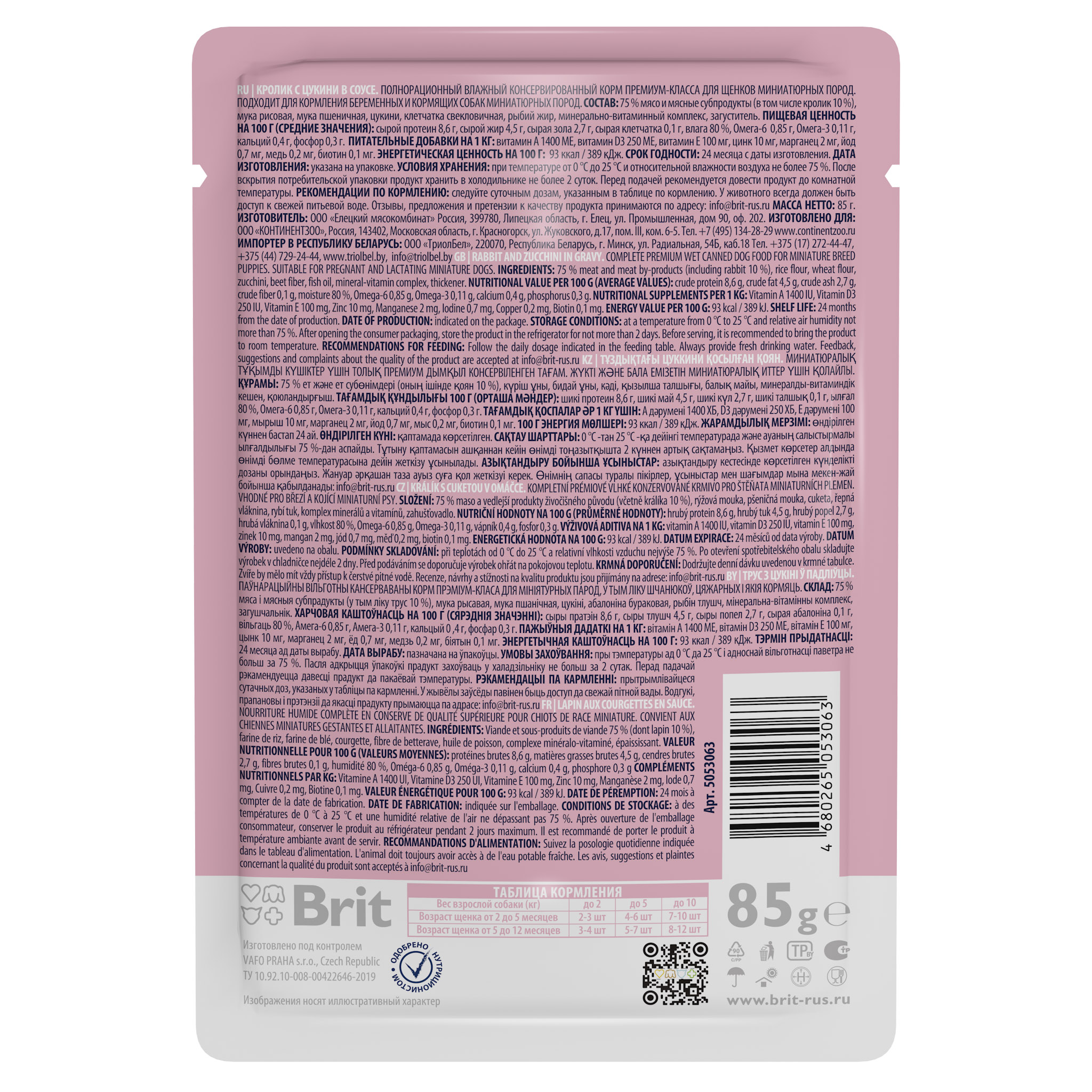 BRIT PREMIUM, Пауч для щенков мини пород, Кролик с цукини в соусе, 85г, 5053063