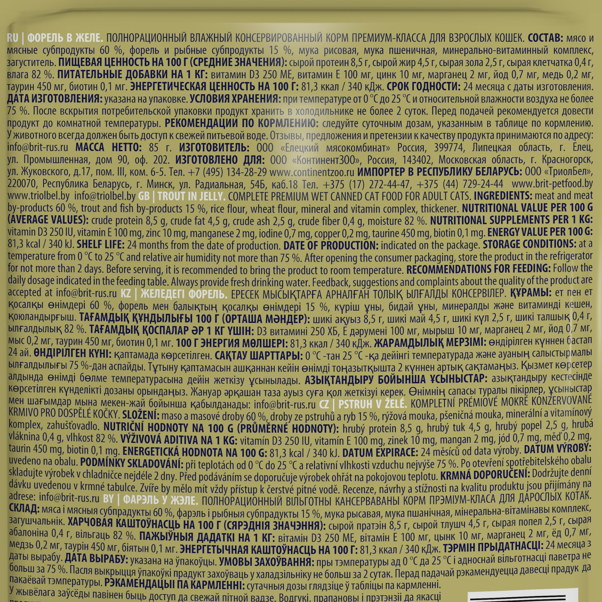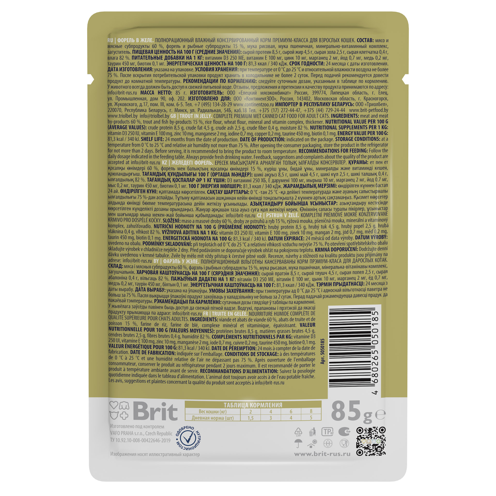 BRIT PREMIUM, Пауч для взрослых кошек, Форель в желе, 85г, 5050185