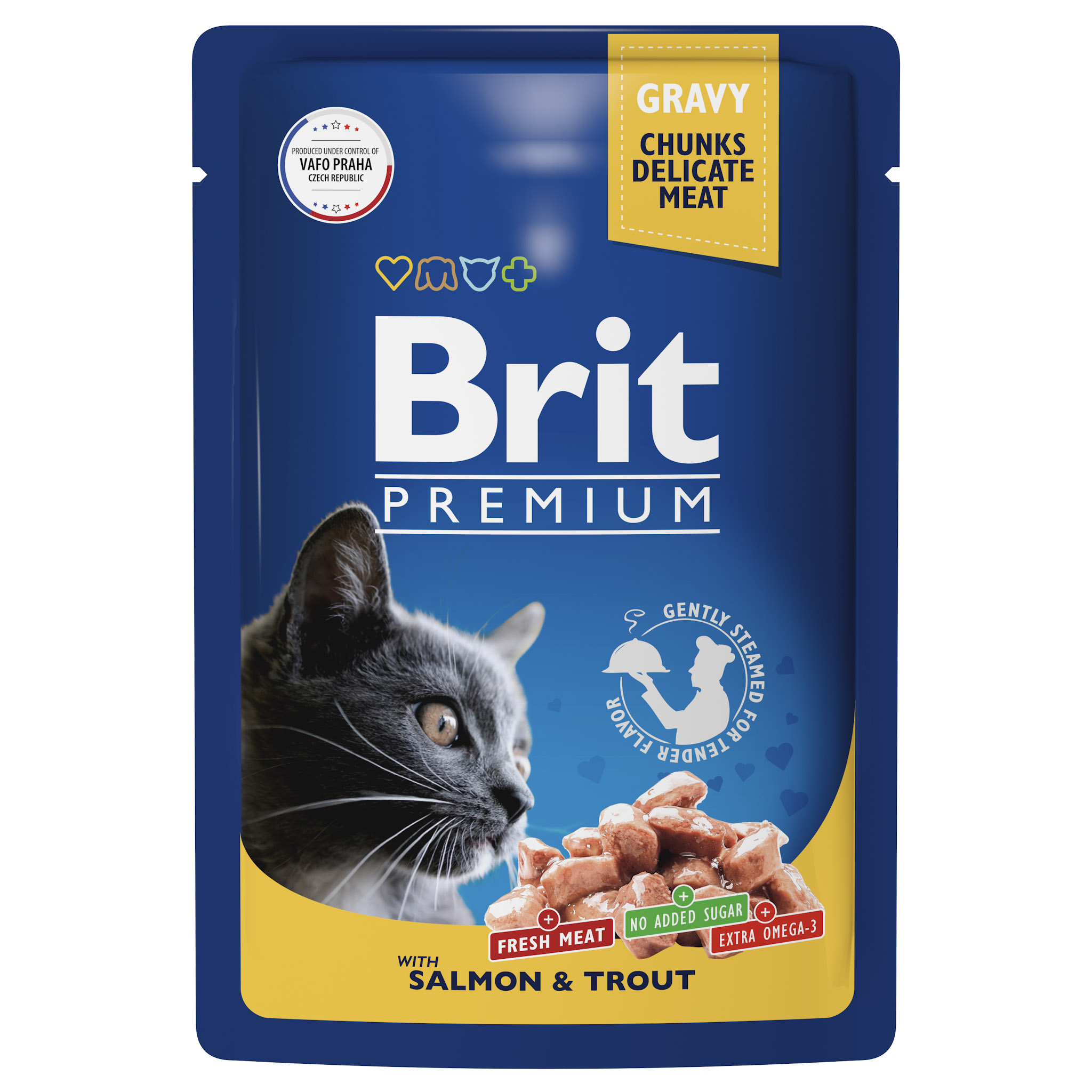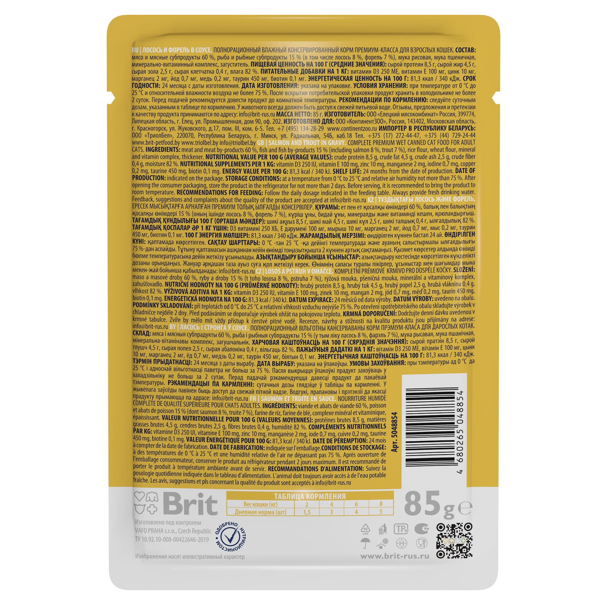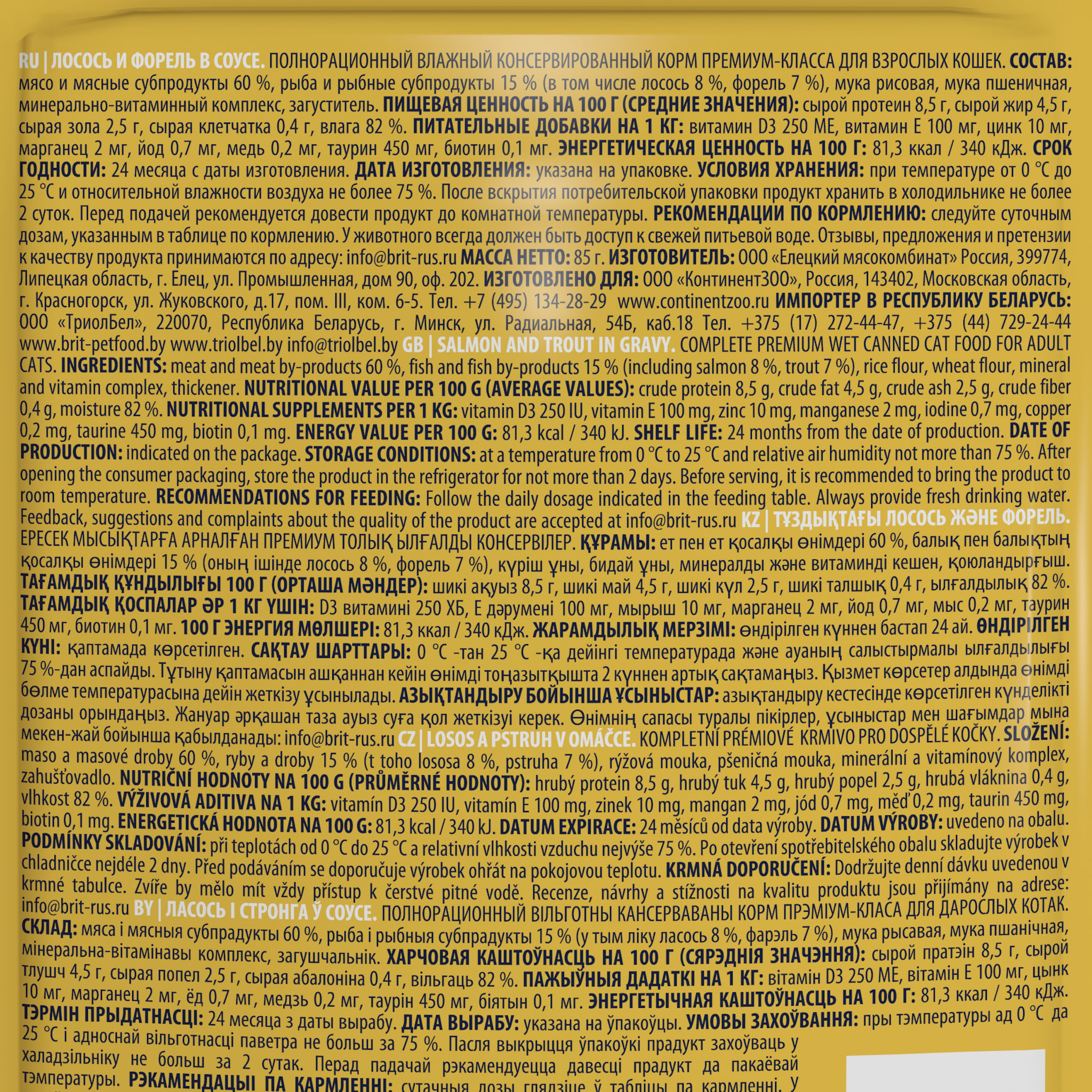 BRIT PREMIUM, Пауч для взрослых кошек, Лосось и Форель в соусе, 85г, 5048854