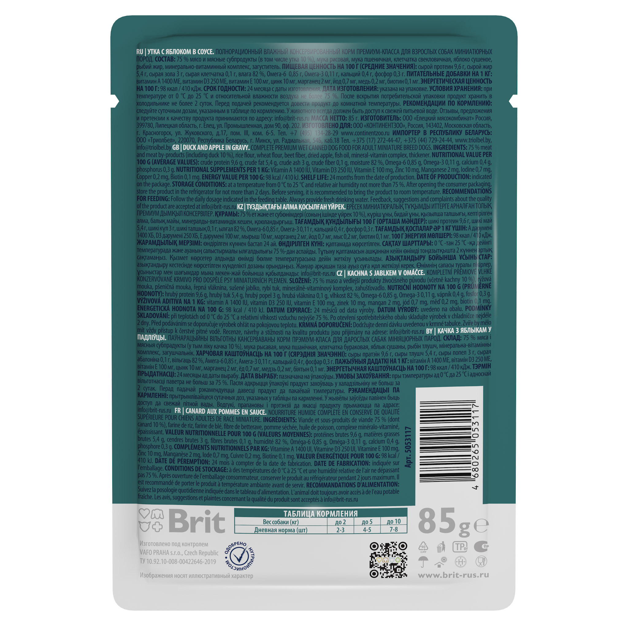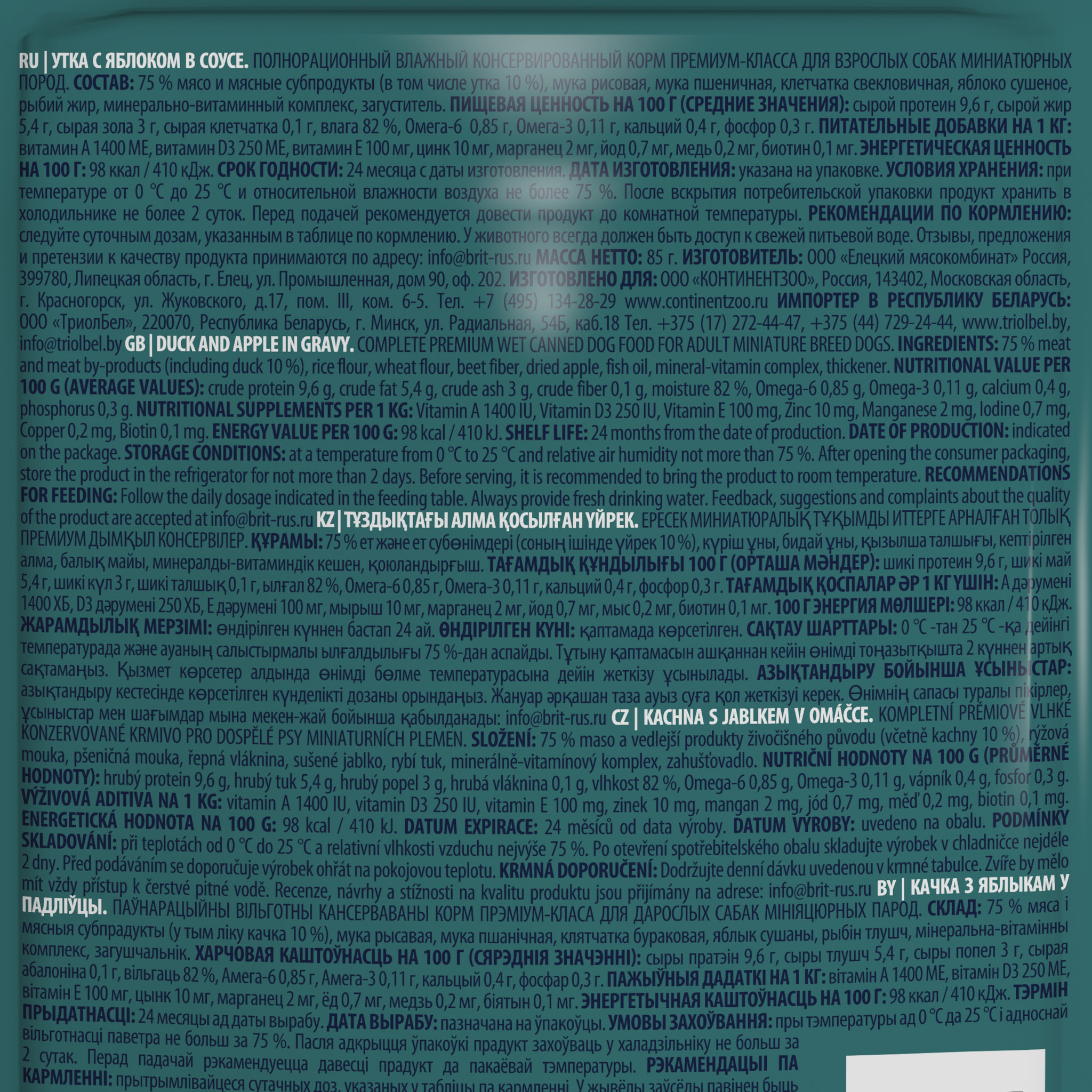 BRIT PREMIUM, Пауч для взрослых собак мини пород, Утка с яблоком в соусе, 85г, 5053117