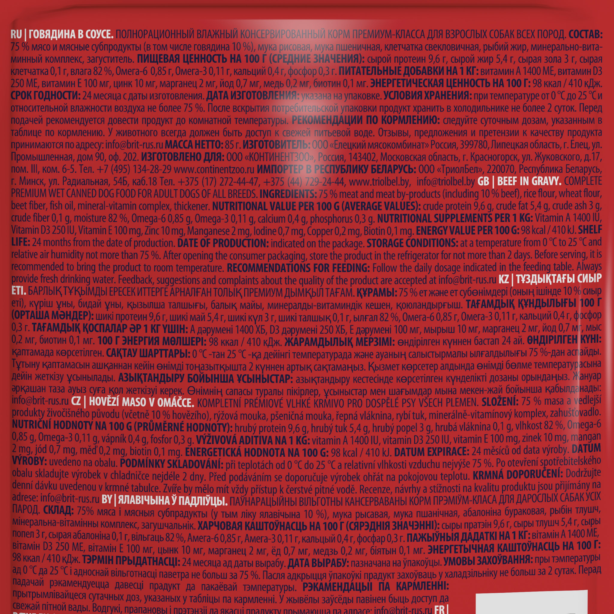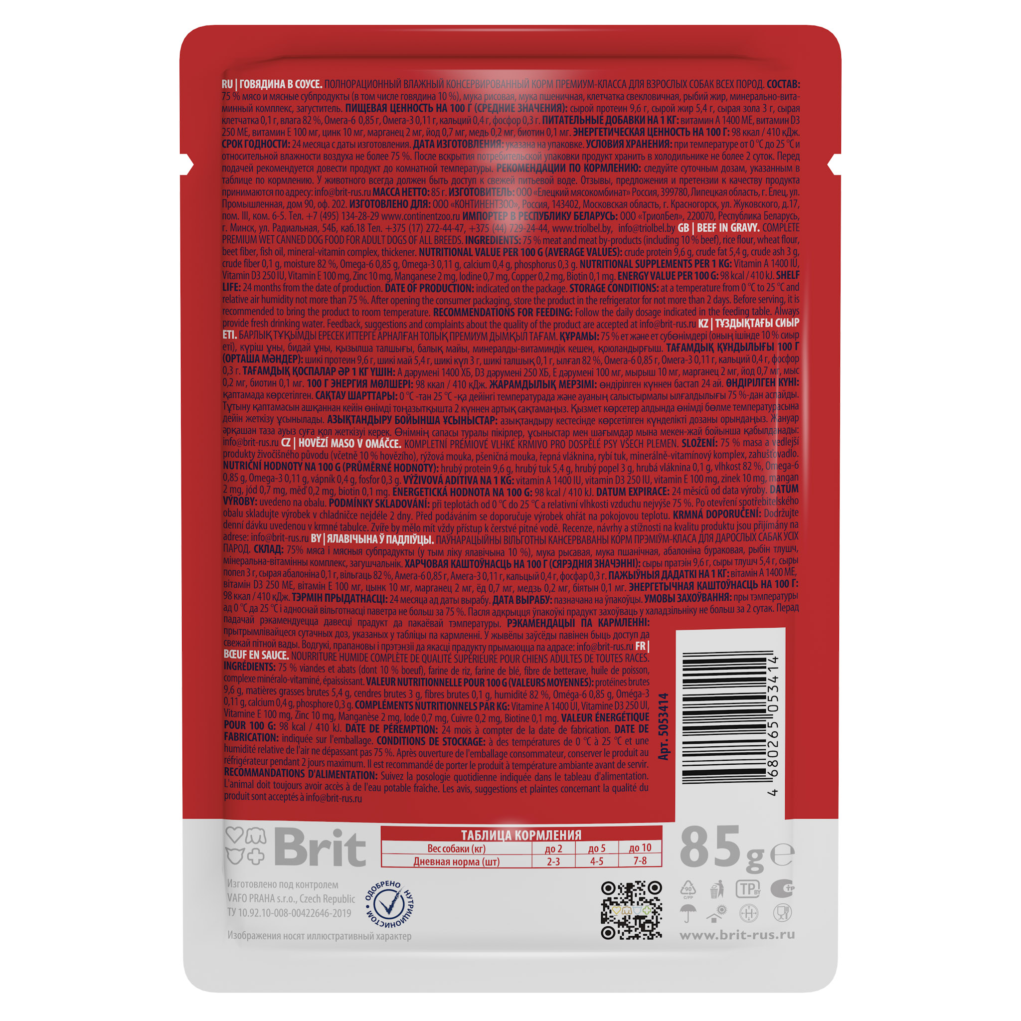 BRIT PREMIUM, Пауч для взрослых собак всех пород, Говядина в соусе, 85г, 5053414