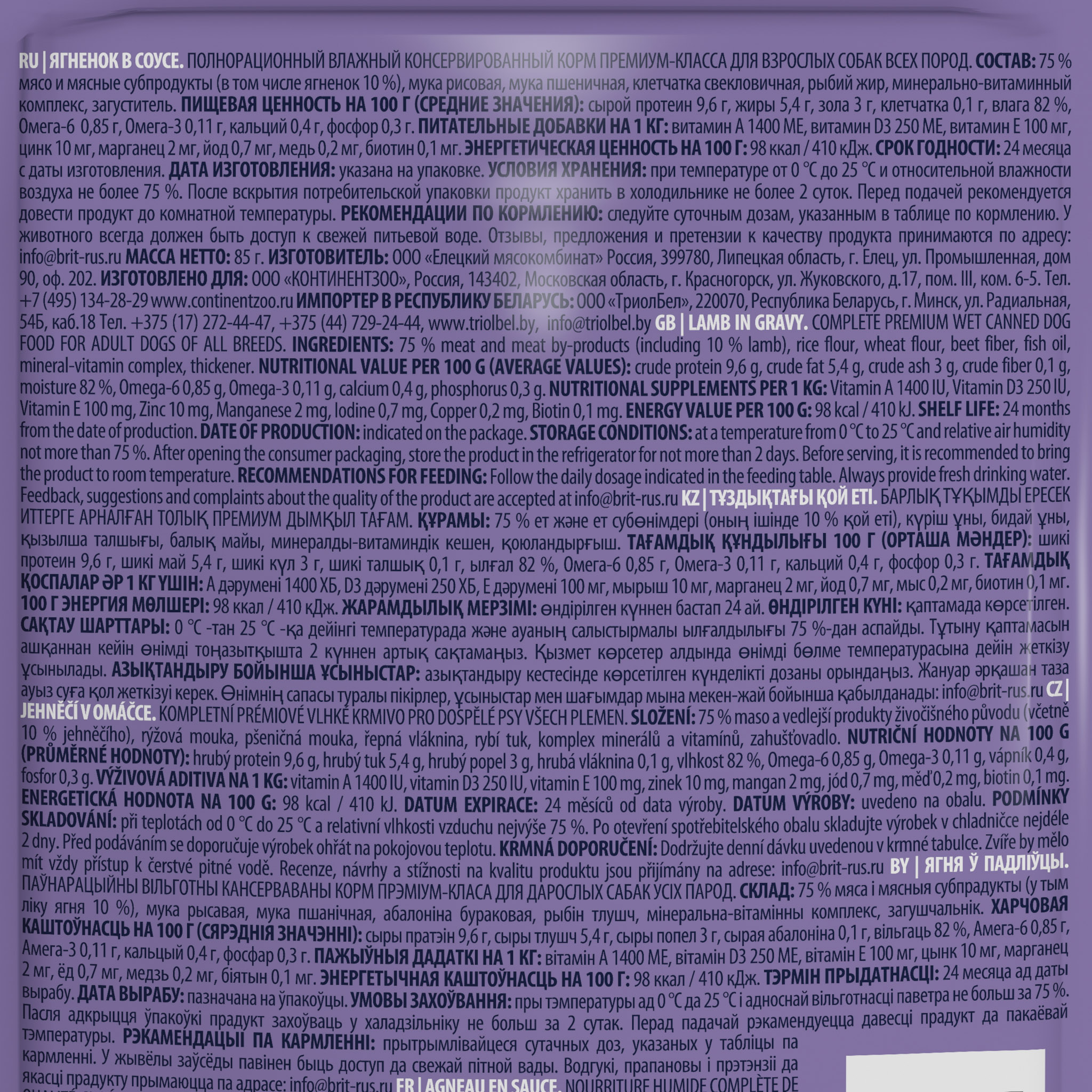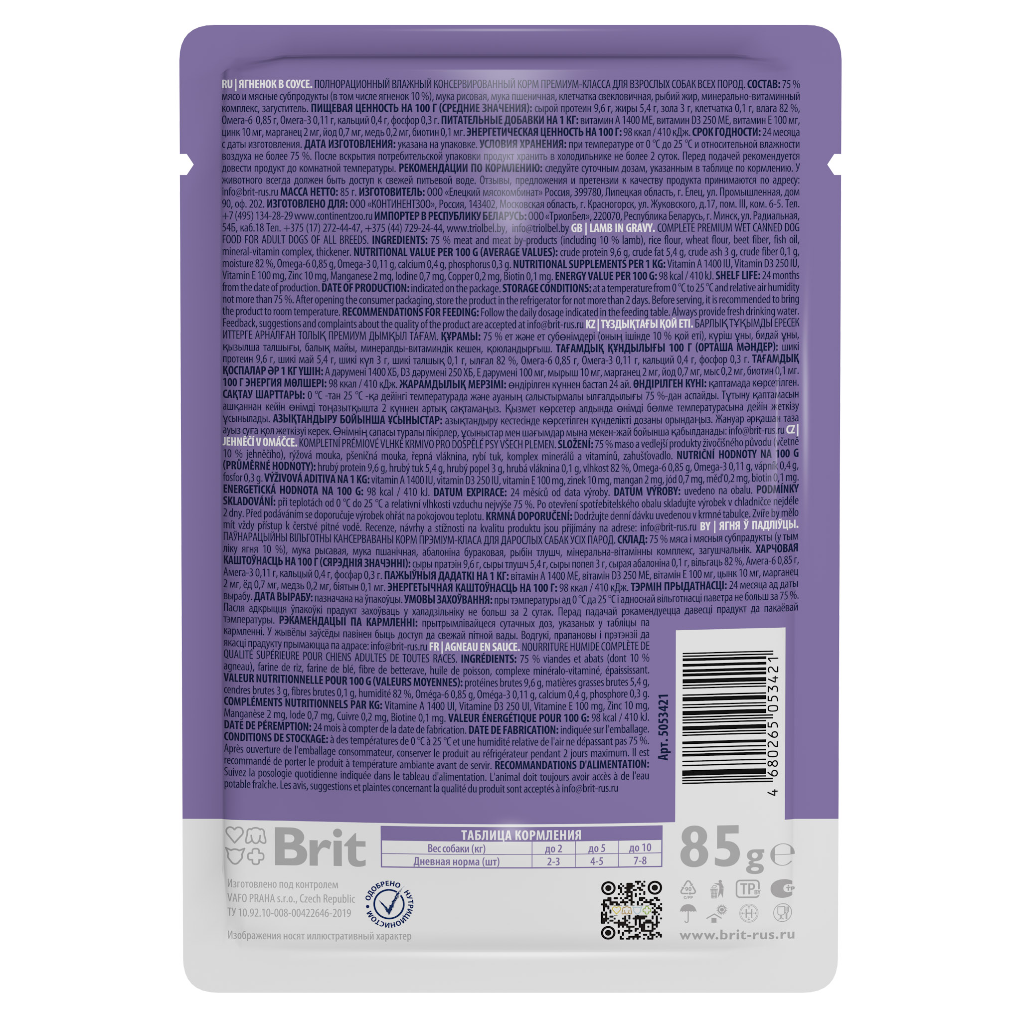 BRIT PREMIUM, Пауч для взрослых собак всех пород, Ягнёнок в соусе, 85гр, 5053421