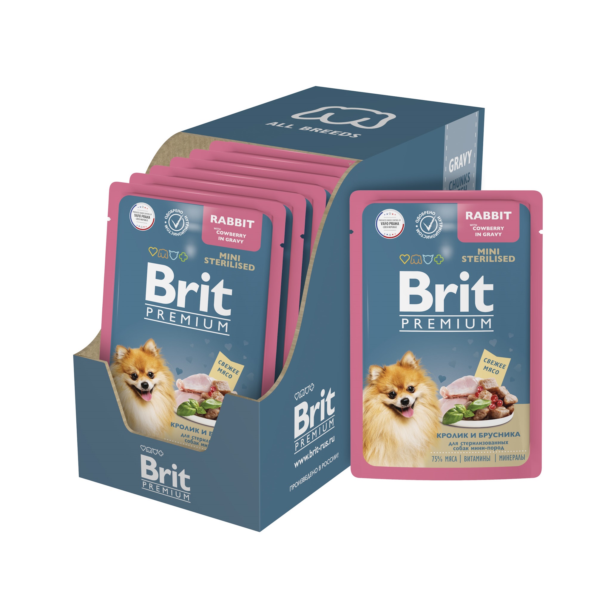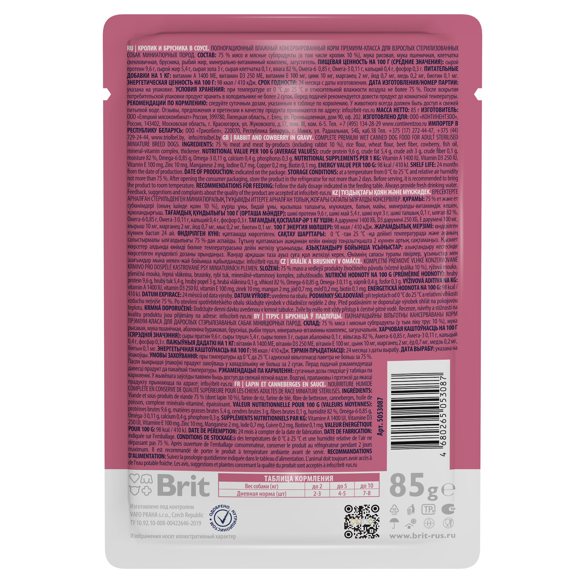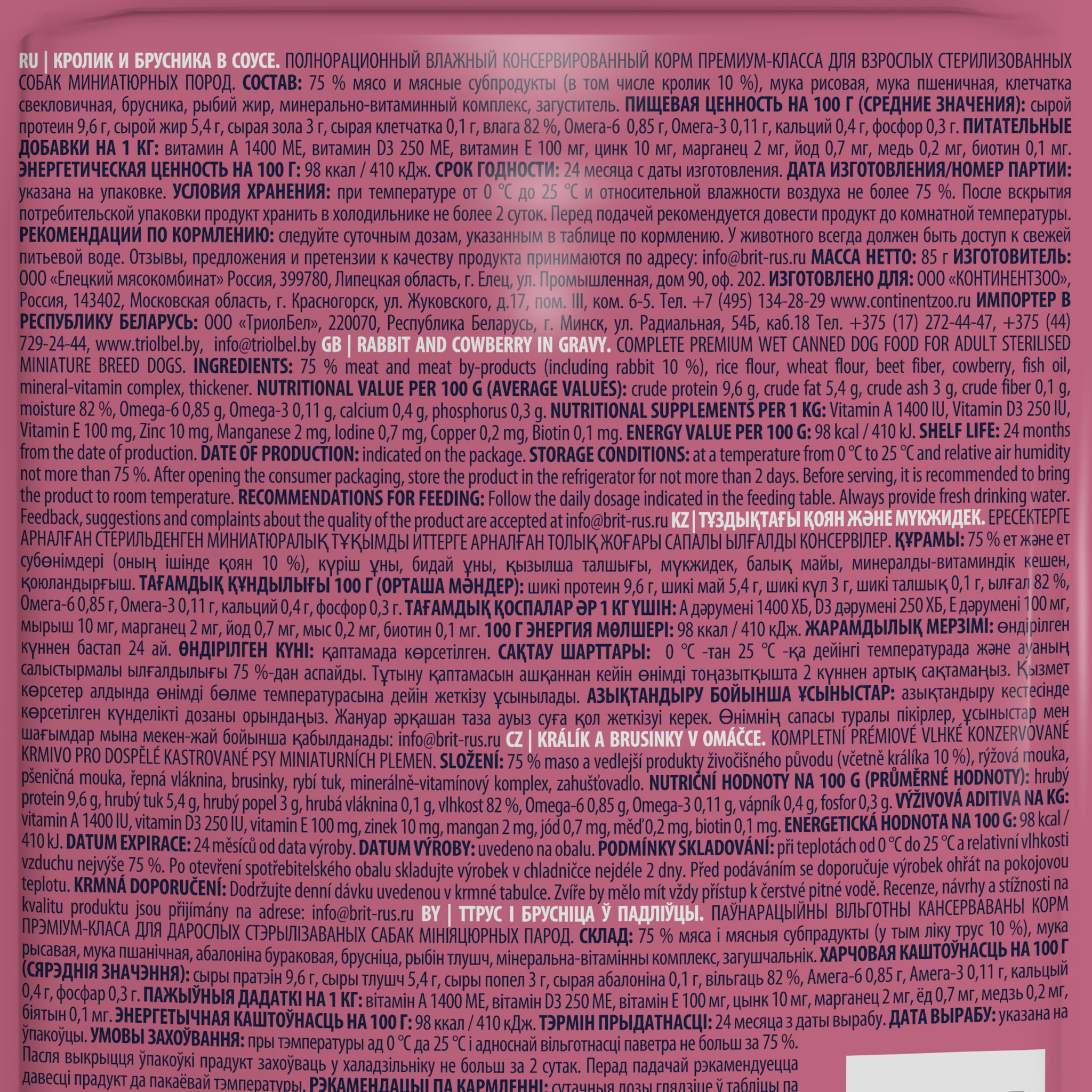 BRIT PREMIUM, Пауч для взрослых стерил. собак мини пород, Кролик и брусника в соусе, 85гр, 5053087