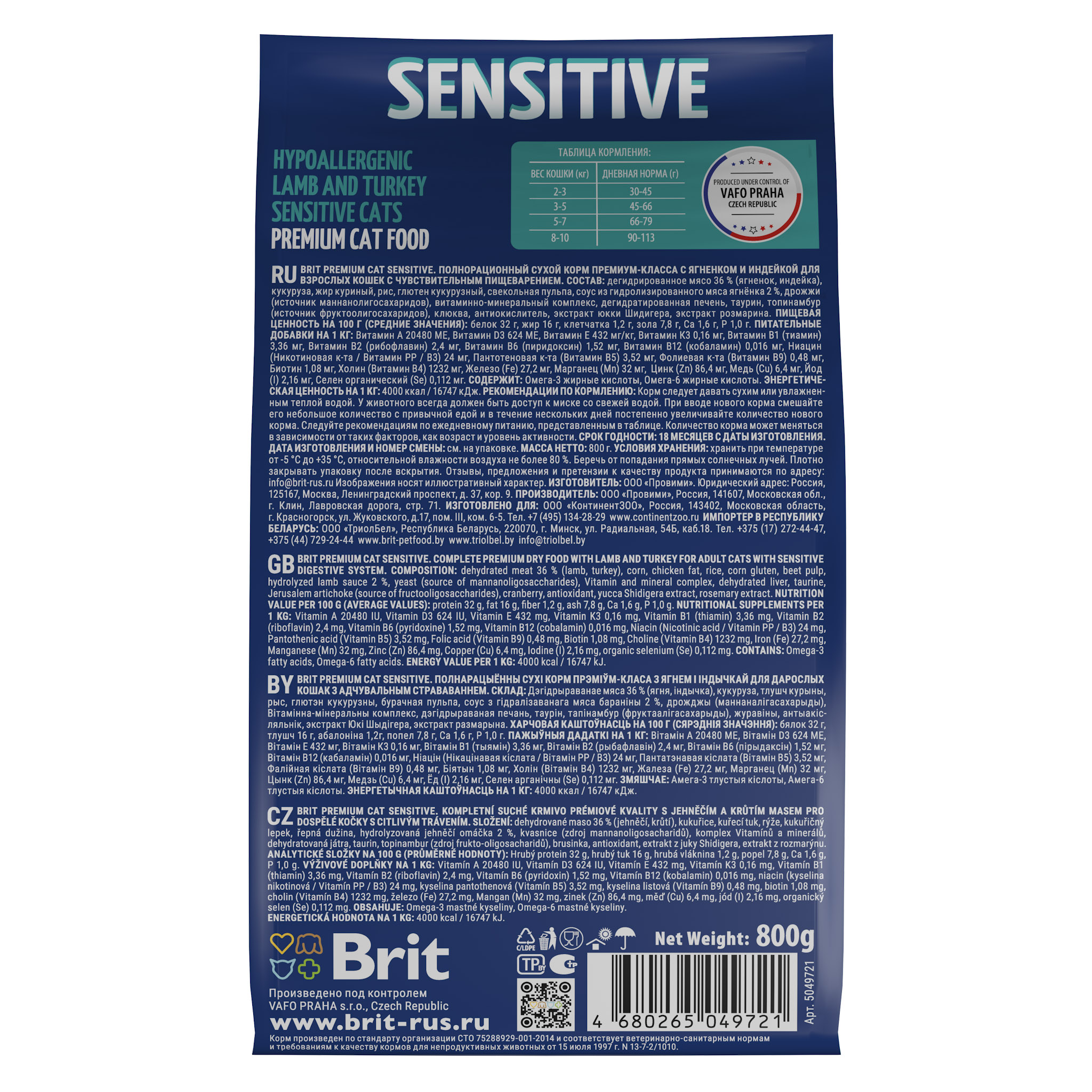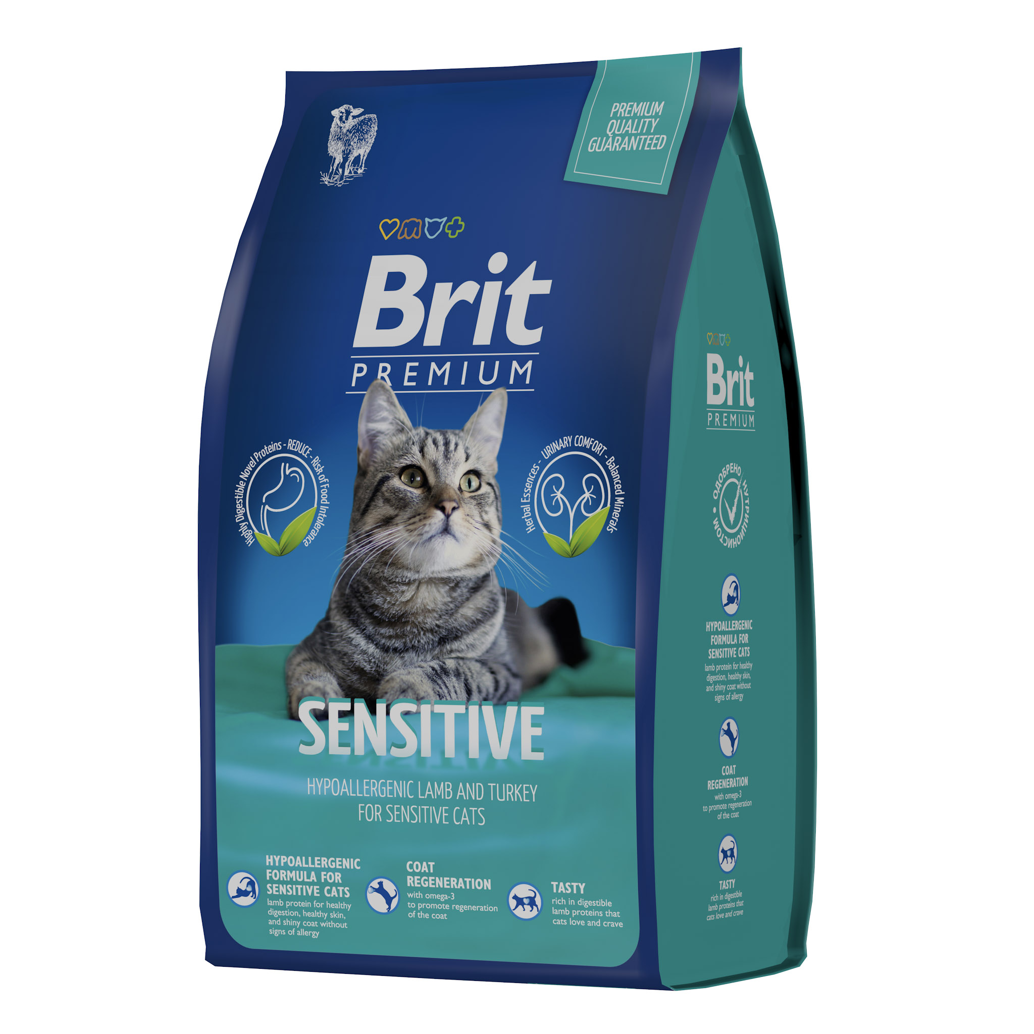 BRIT PREMIUM, Сухой корм с ягненком и индейкой для кошек "Cat Sensitive", 0.8кг, 5049721