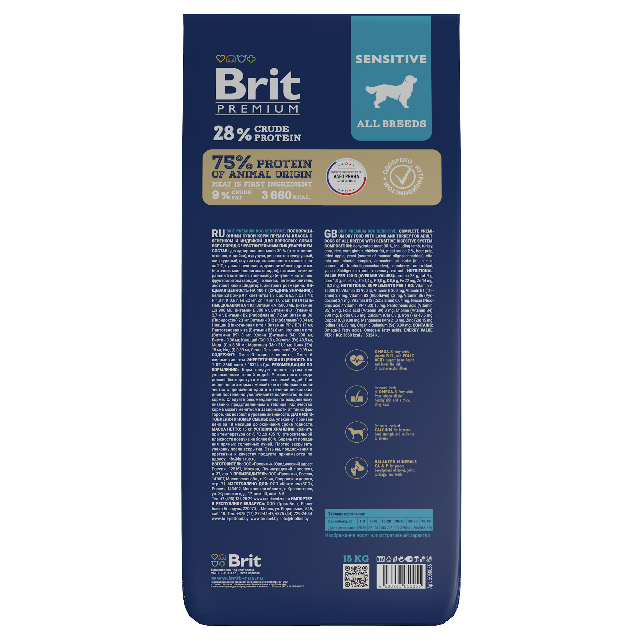 BRIT PREMIUM, Сухой корм с ягненком и индейкой для собак всех пород "Dog Sensitive", 15кг, 5050055