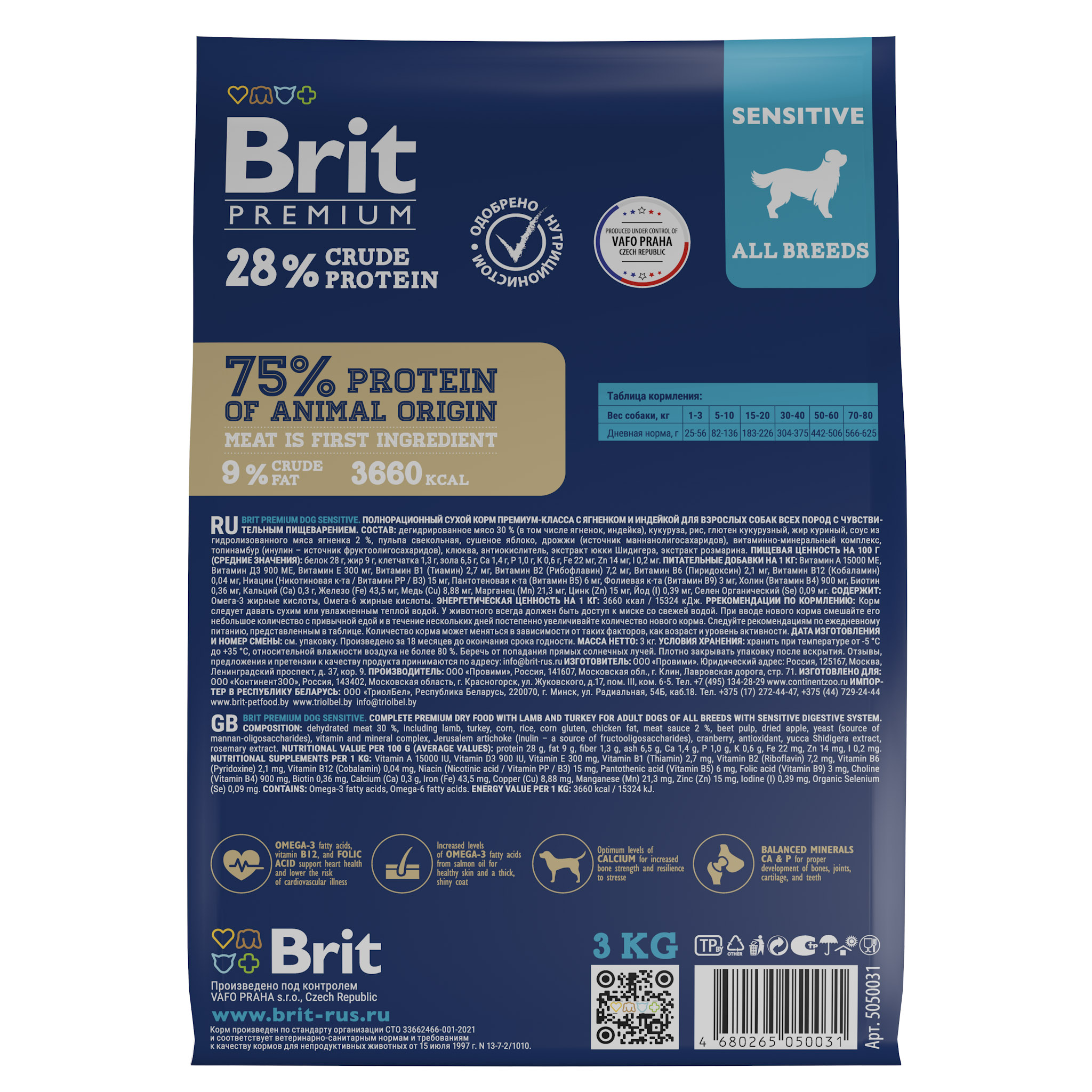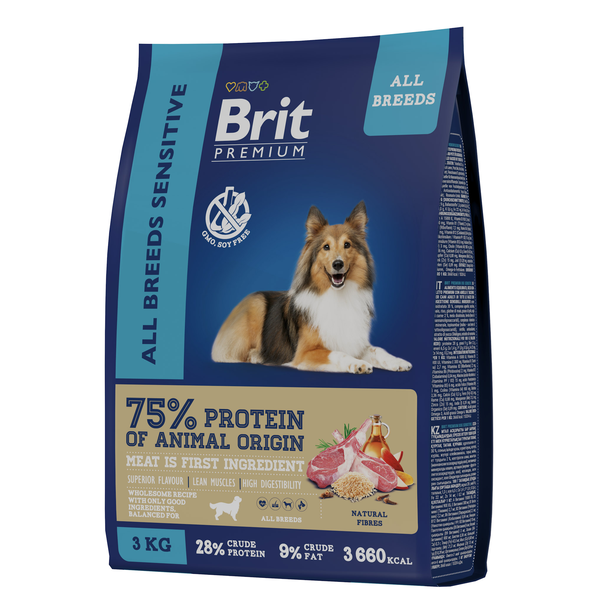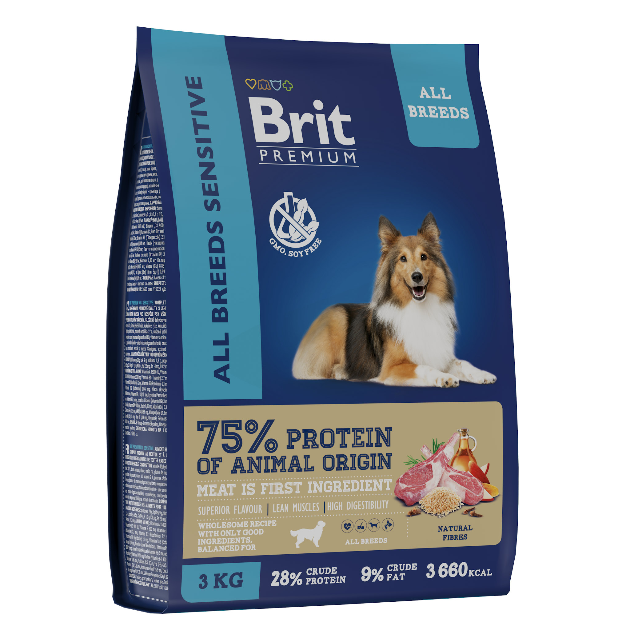 BRIT PREMIUM, Сухой корм с ягнёнком и индейкой для собак всех пород "Dog Sensitive", 3кг, 5050031
