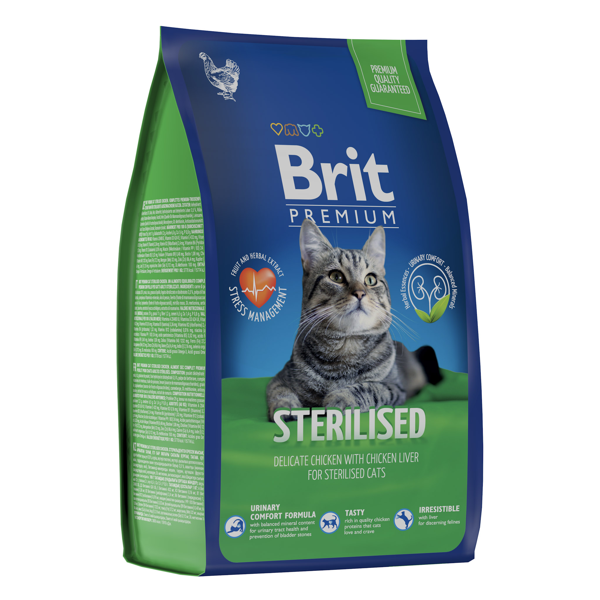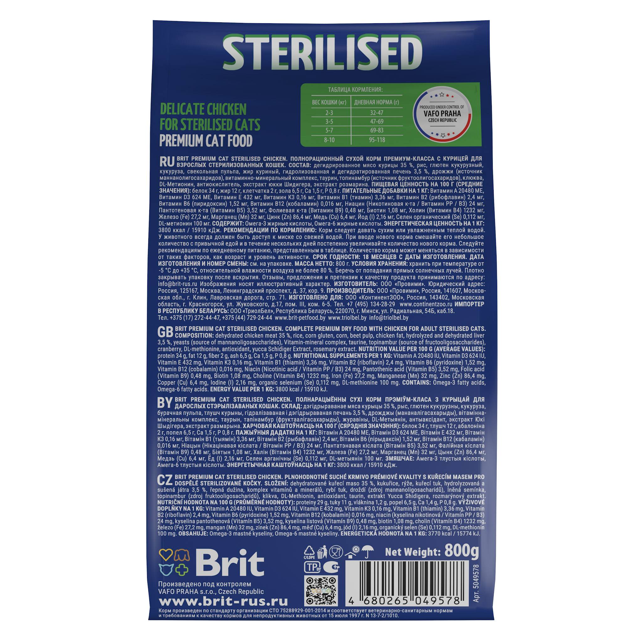 BRIT PREMIUM, Сухой корм с курицей для кошек "Cat Sterilised Chicken", 0.8кг, 5049578
