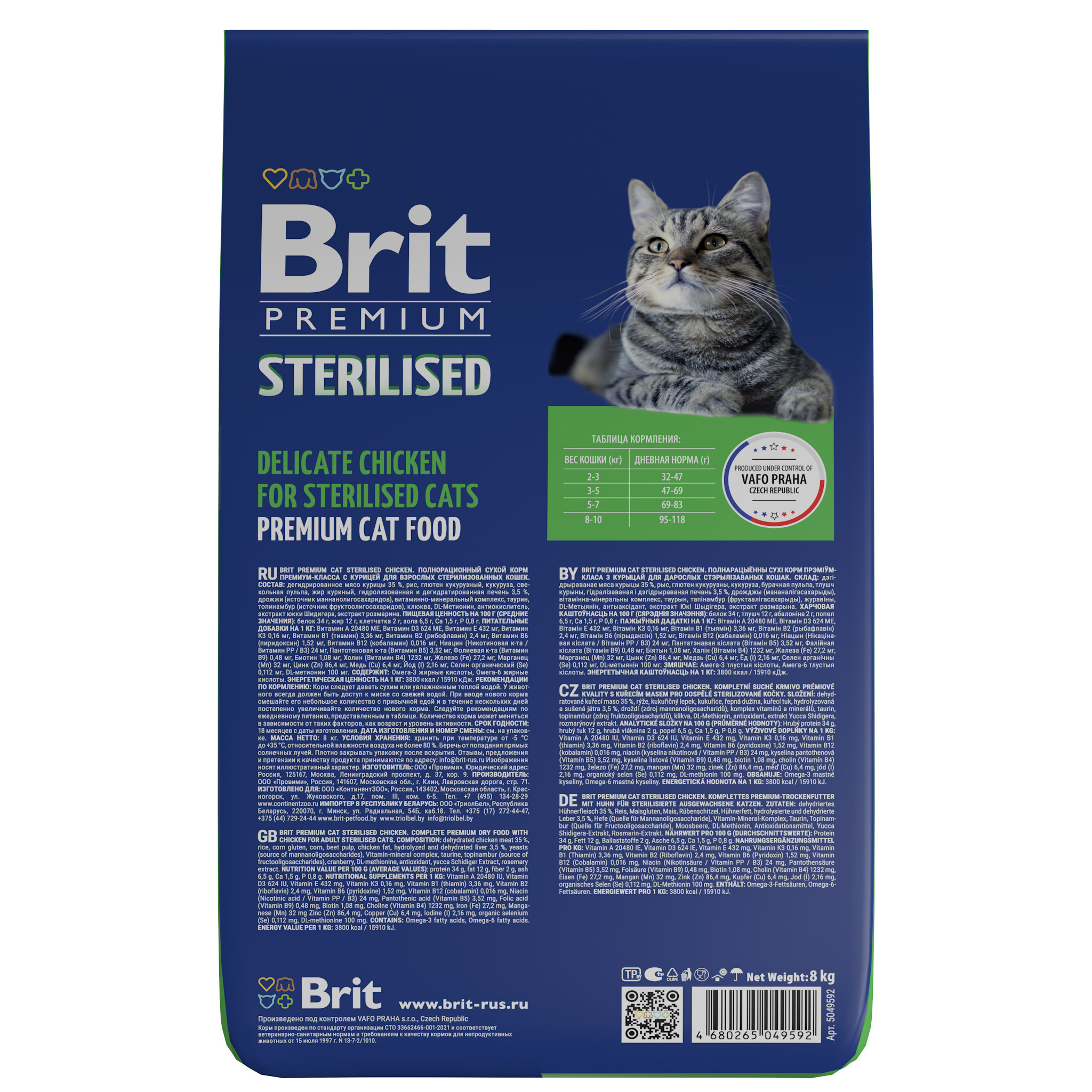 BRIT PREMIUM, Сухой корм с курицей для кошек "Cat Sterilised Chicken", 8кг, 5049592