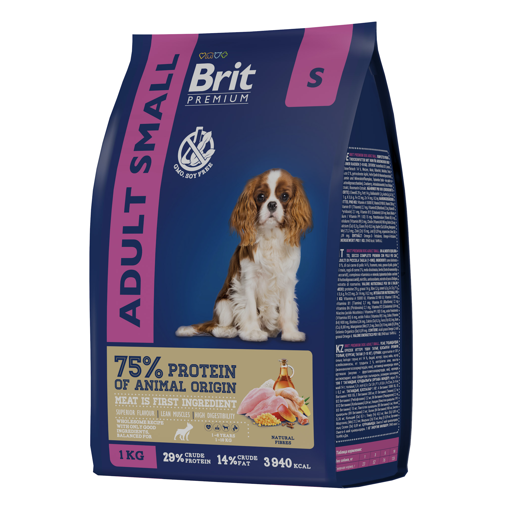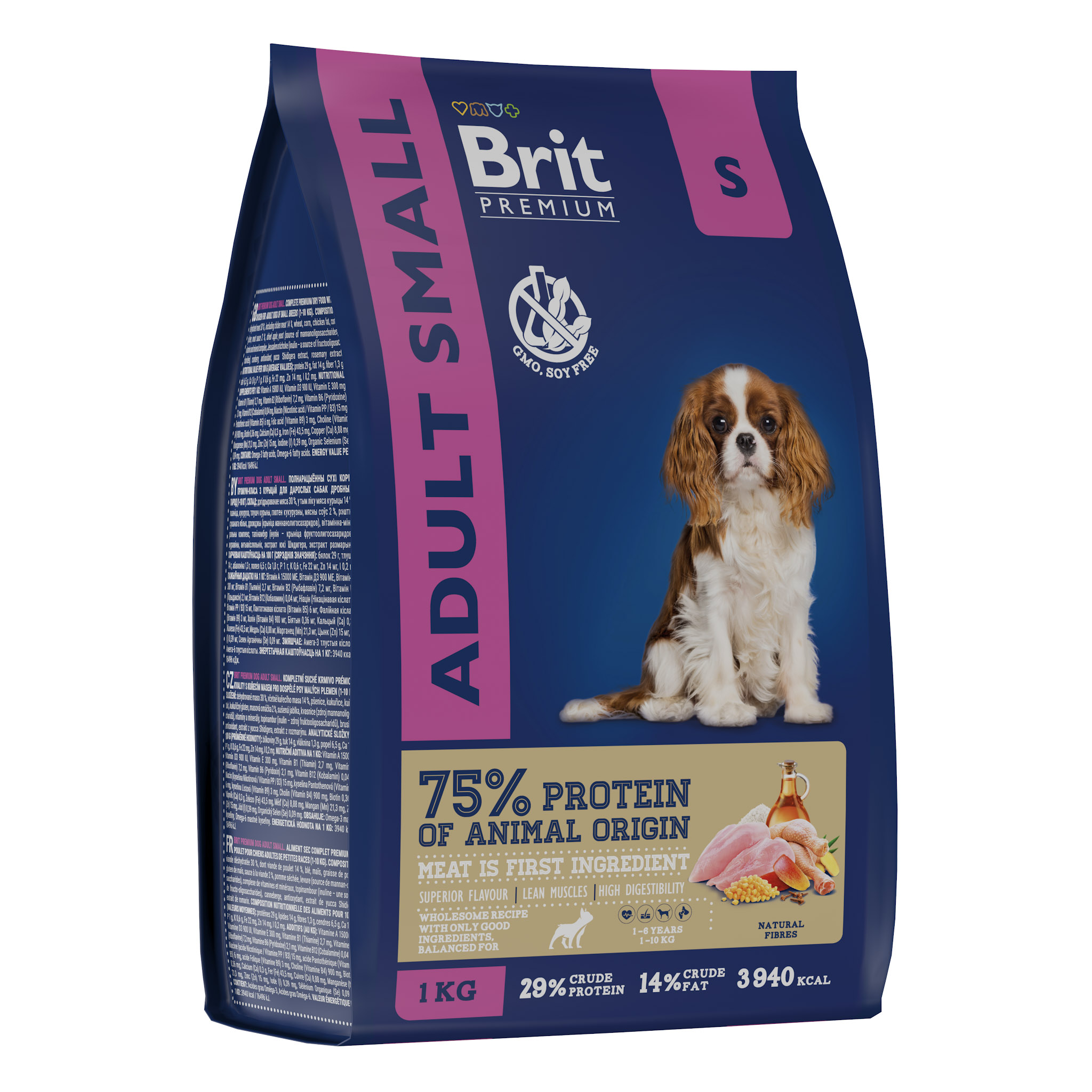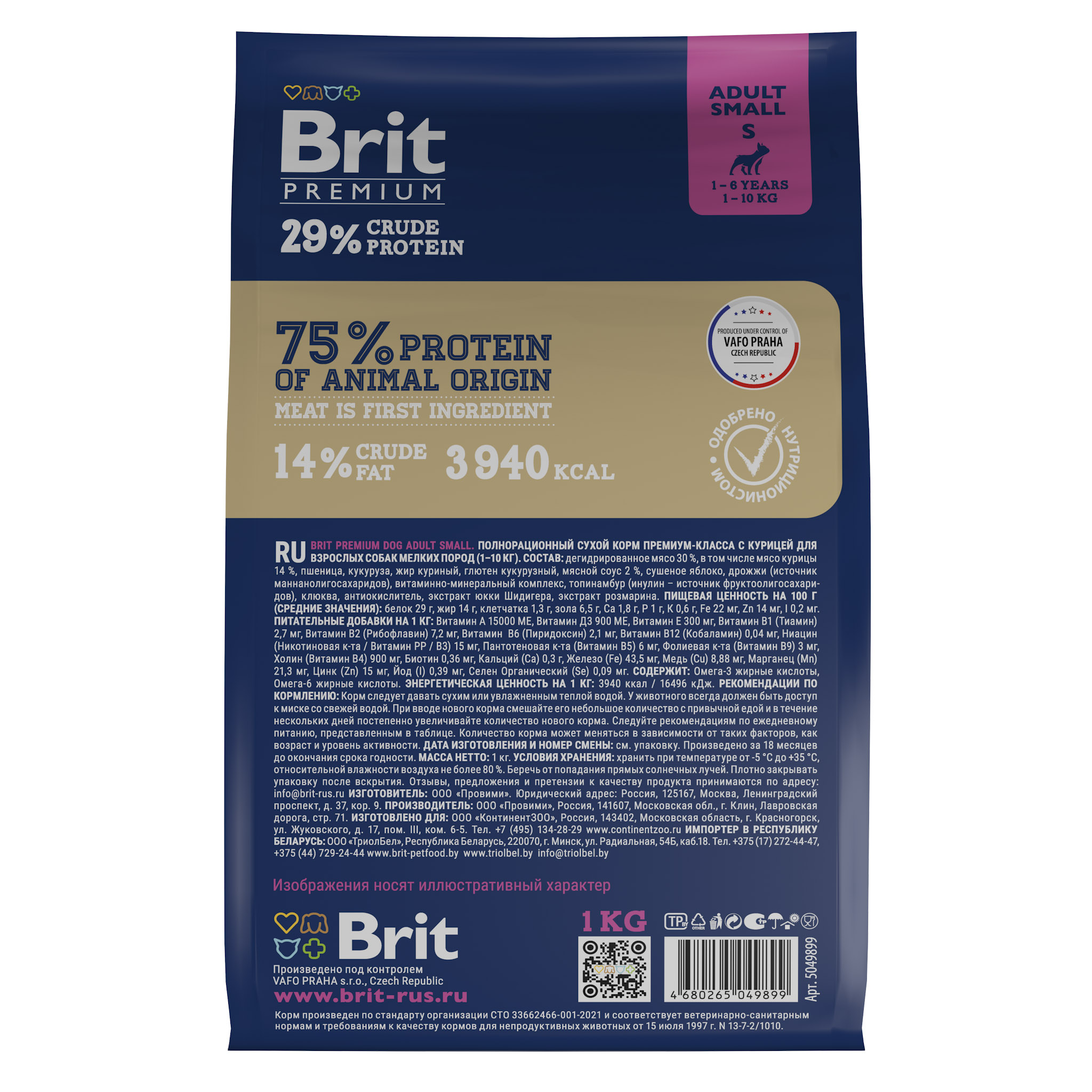 BRIT PREMIUM, Сухой корм с курицей для собак мелких пород 1–10кг "Dog Adult Small", 1кг, 5049899