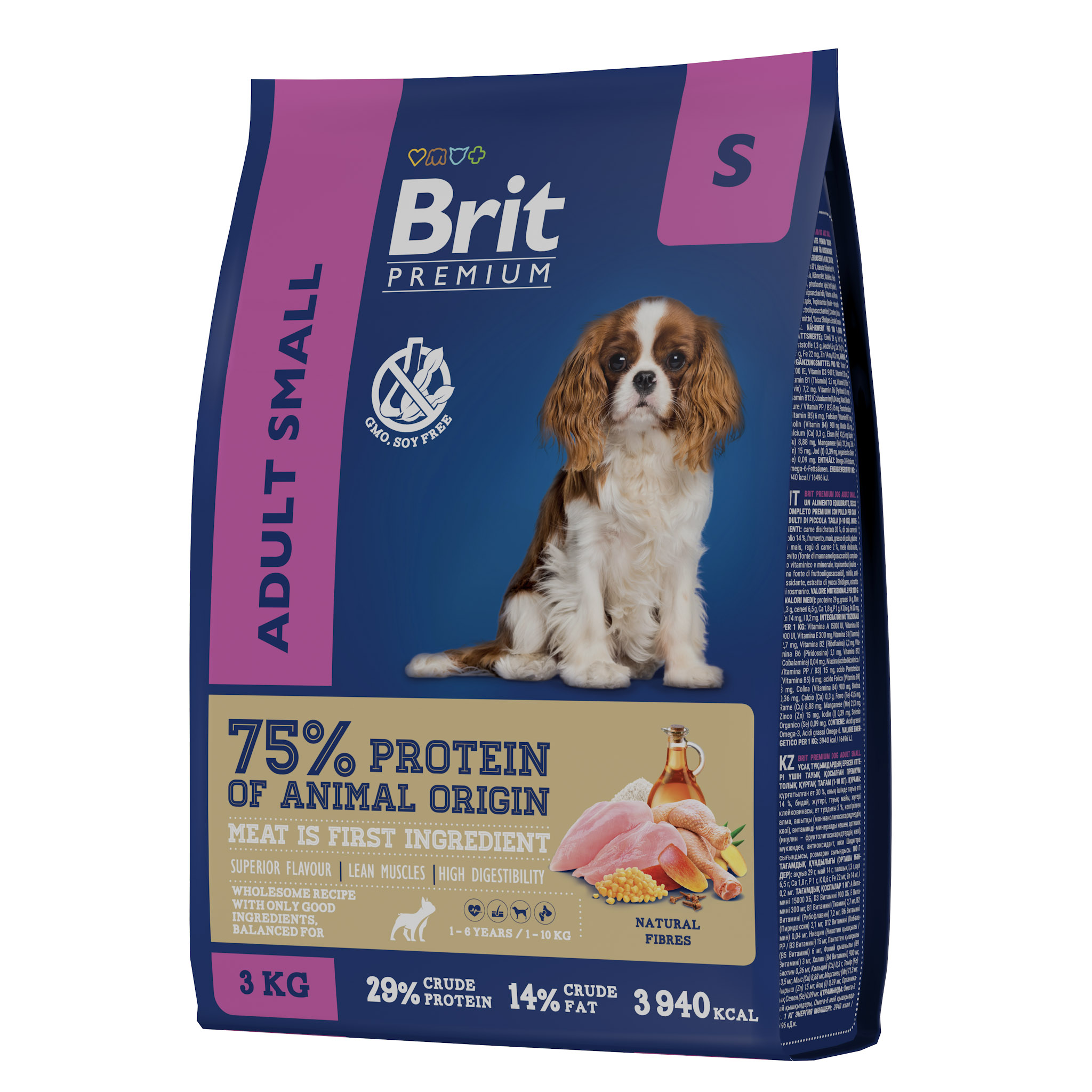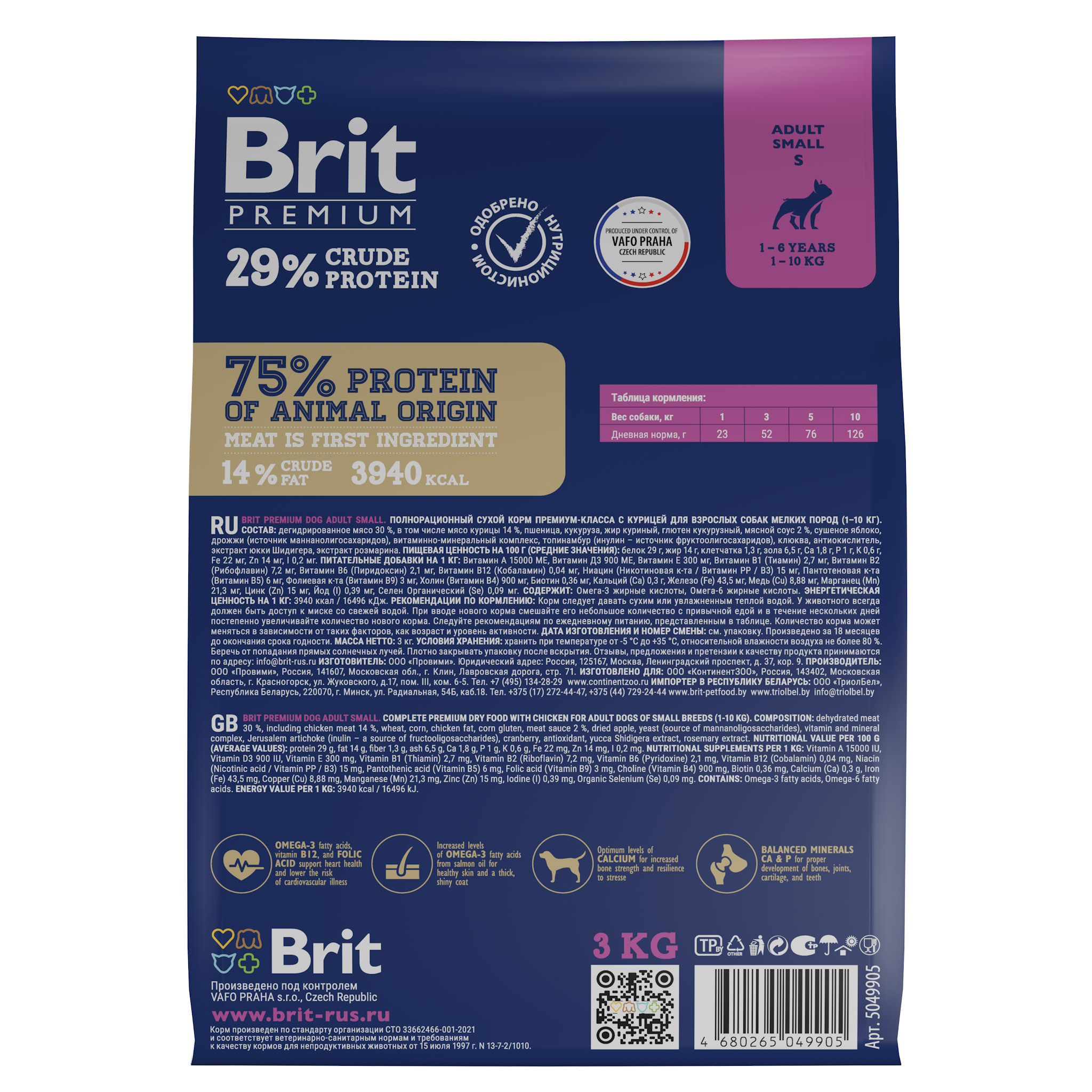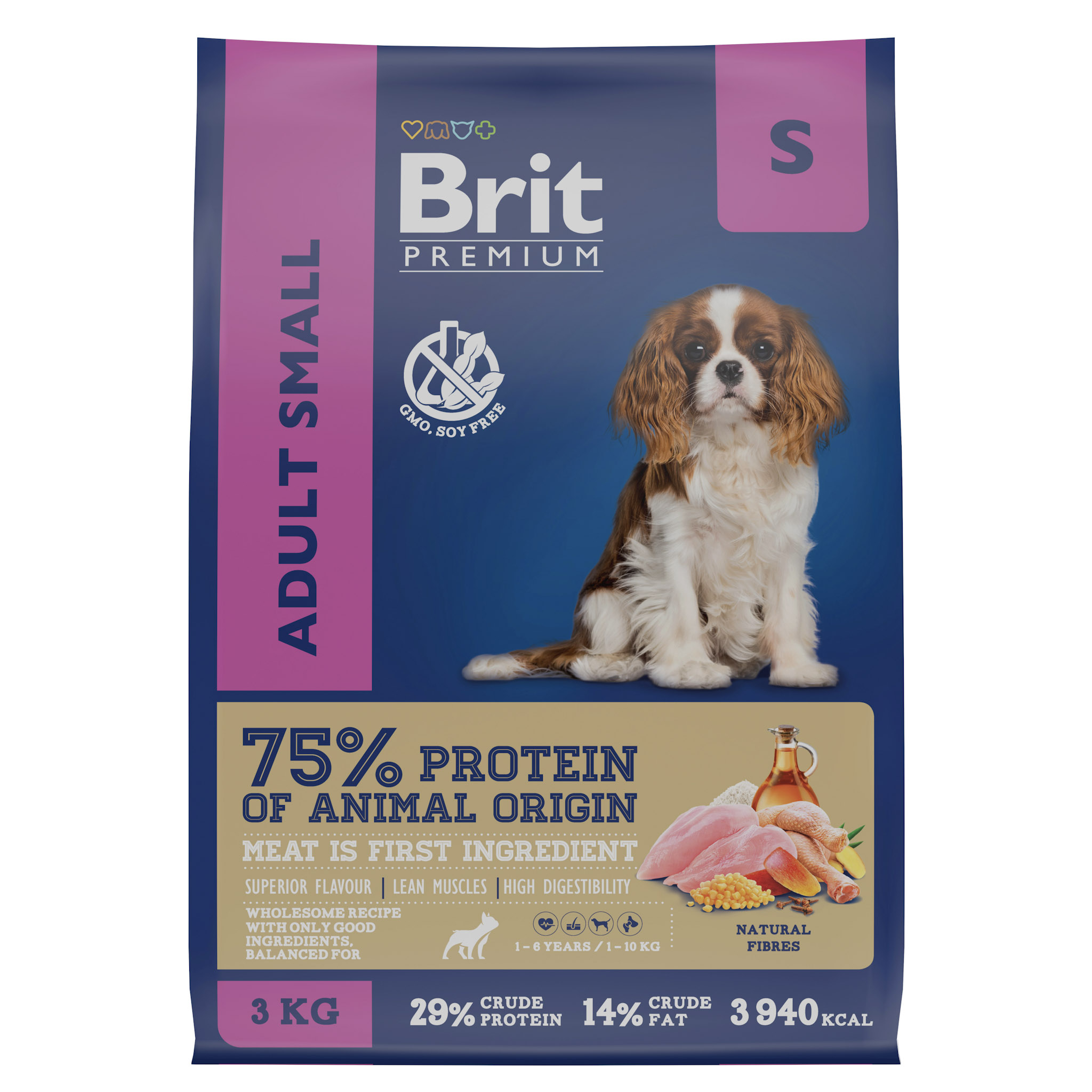 BRIT PREMIUM, Сухой корм с курицей для собак мелких пород 1–10кг "Dog Adult Small", 3кг, 5049905