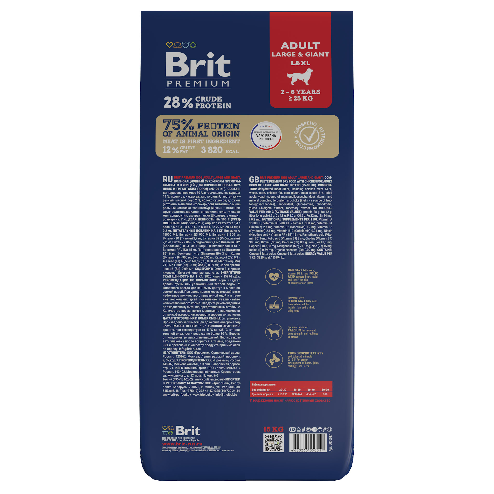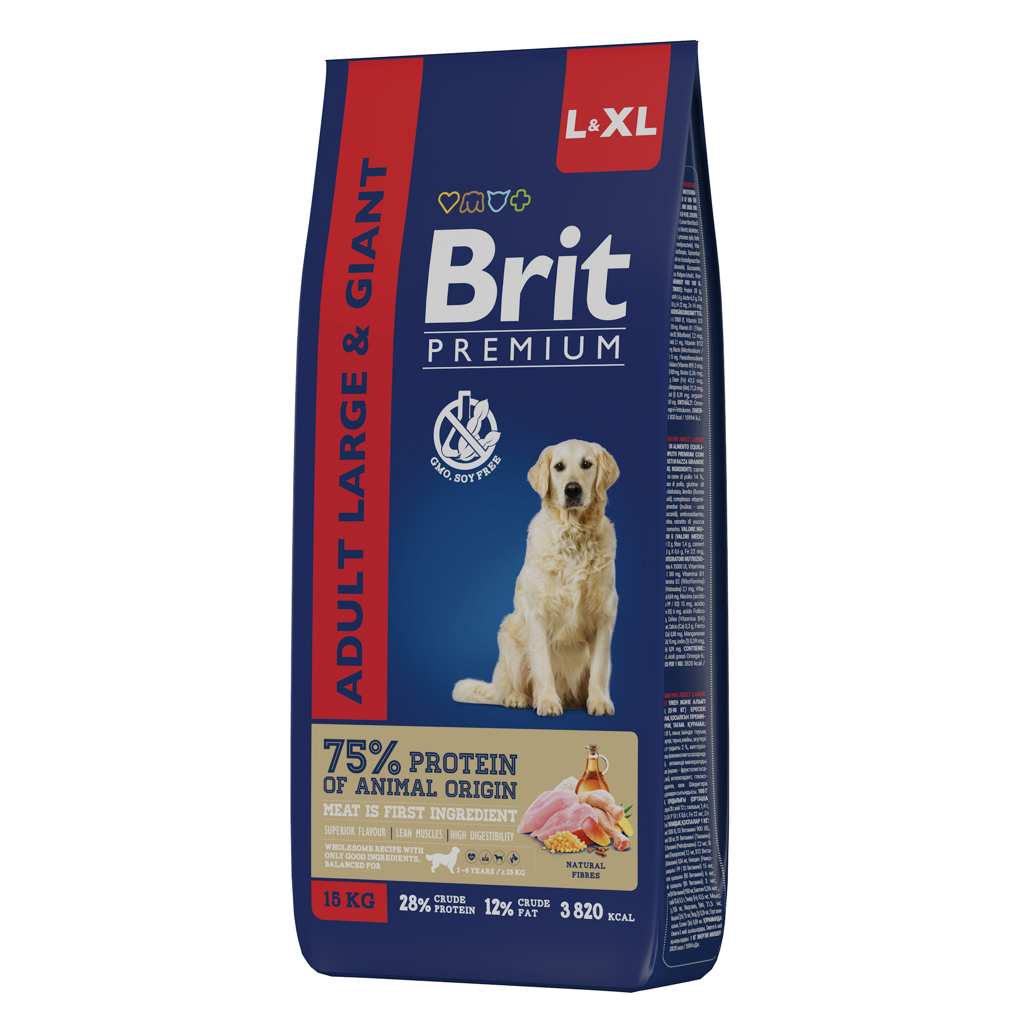 BRIT PREMIUM, Сухой корм с курицей для взрослых собак "Dog Adult Large and Giant", 15кг, 5050017