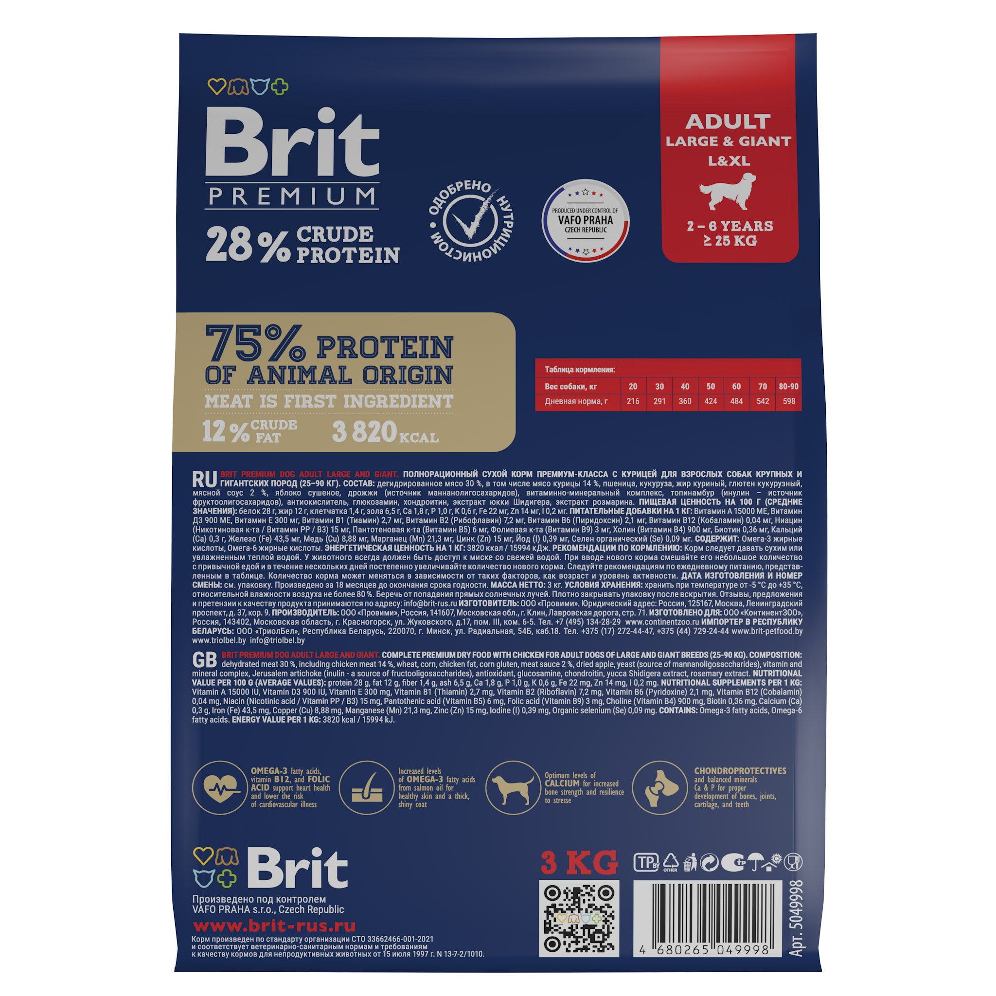 BRIT PREMIUM, Сухой корм с курицей для взрослых собак "Dog Adult Large and Giant", 3кг, 5049998