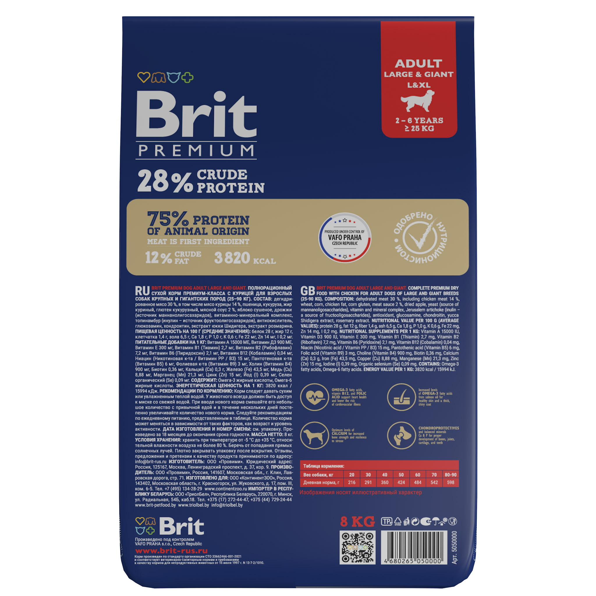 BRIT PREMIUM, Сухой корм с курицей для взрослых собак "Dog Adult Large and Giant", 8кг, 5050000
