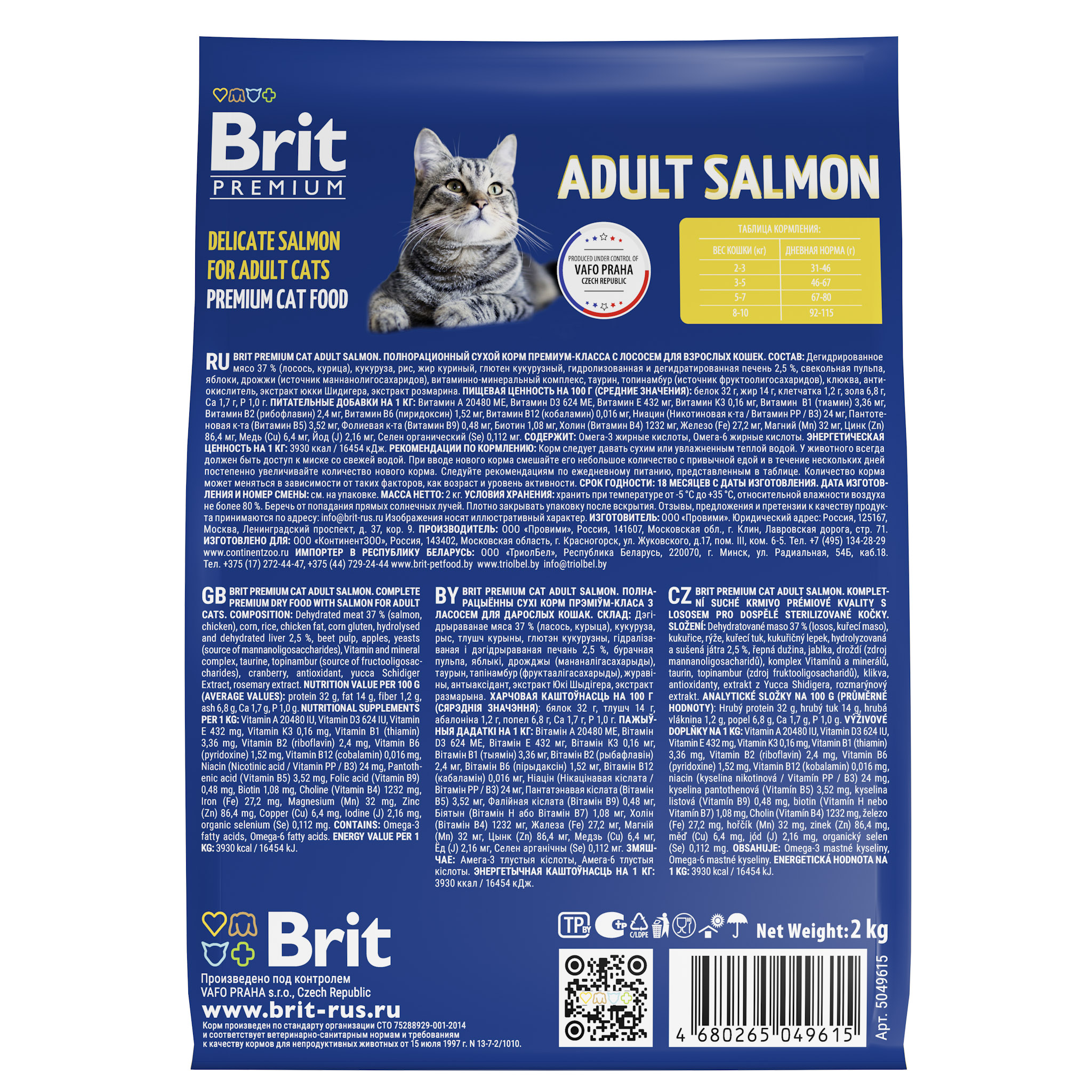 BRIT PREMIUM, Сухой корм с лососем для взрослых кошек "Cat Adult Salmon", 2кг, 5049615