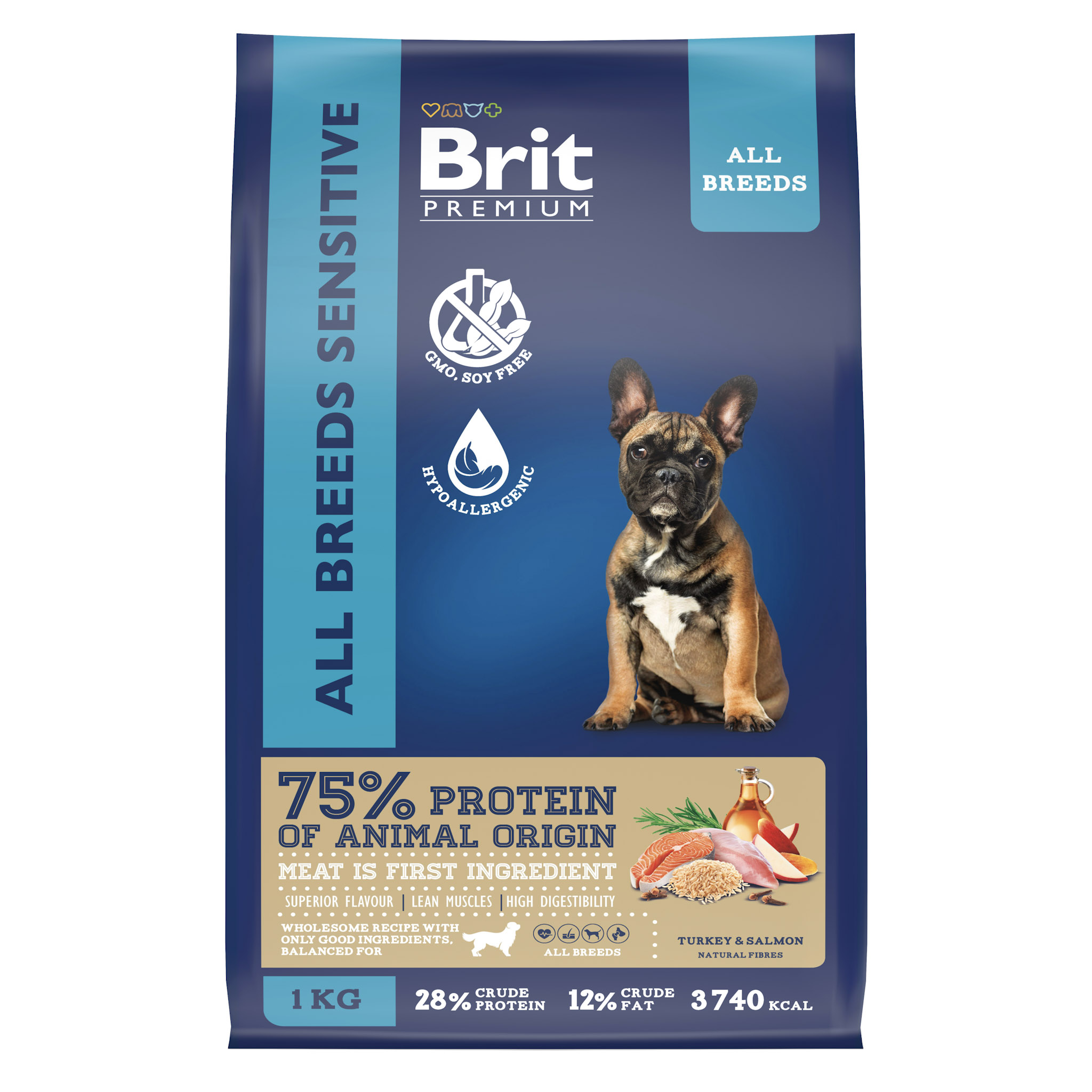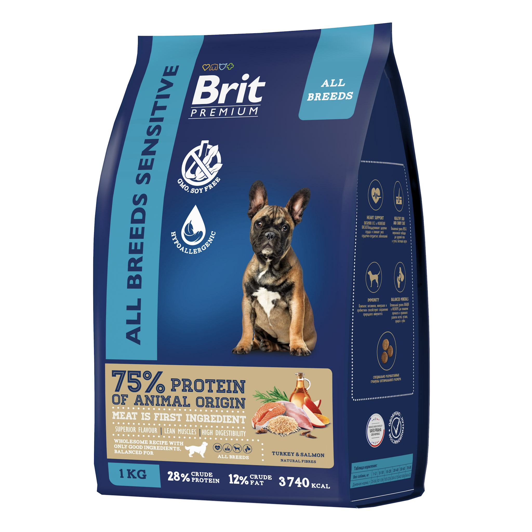 BRIT PREMIUM, Сухой корм с лососем и индейкой для собак "Dog Sensitive", 1 кг, 5063192