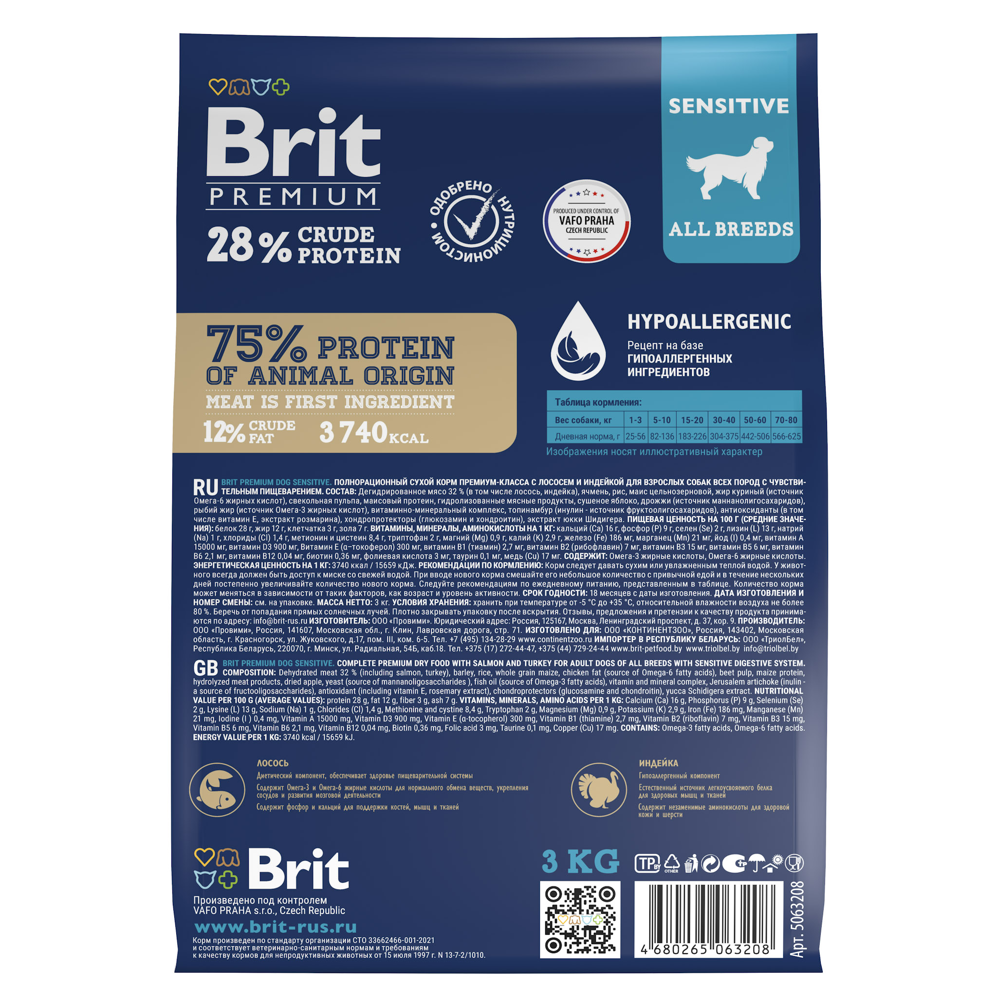 BRIT PREMIUM, Сухой корм с лососем и индейкой для собак "Dog Sensitive", 3 кг, 5063208