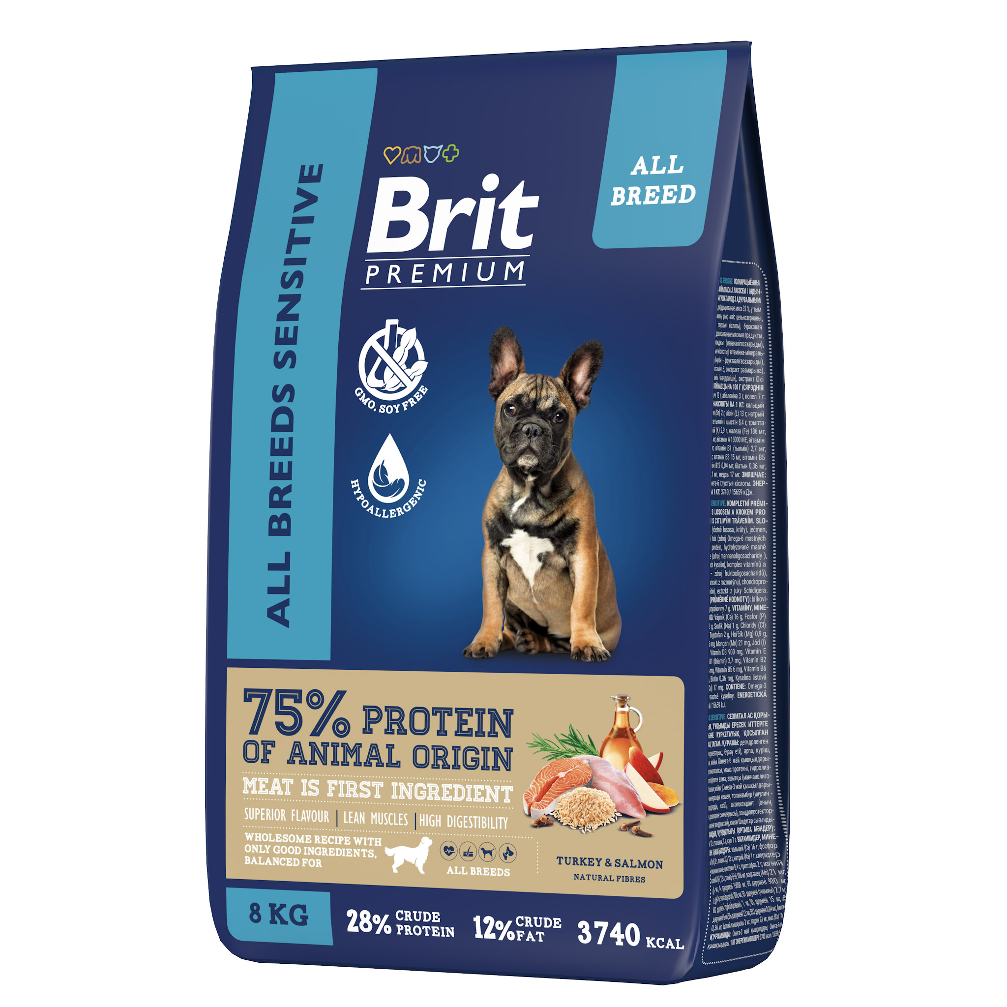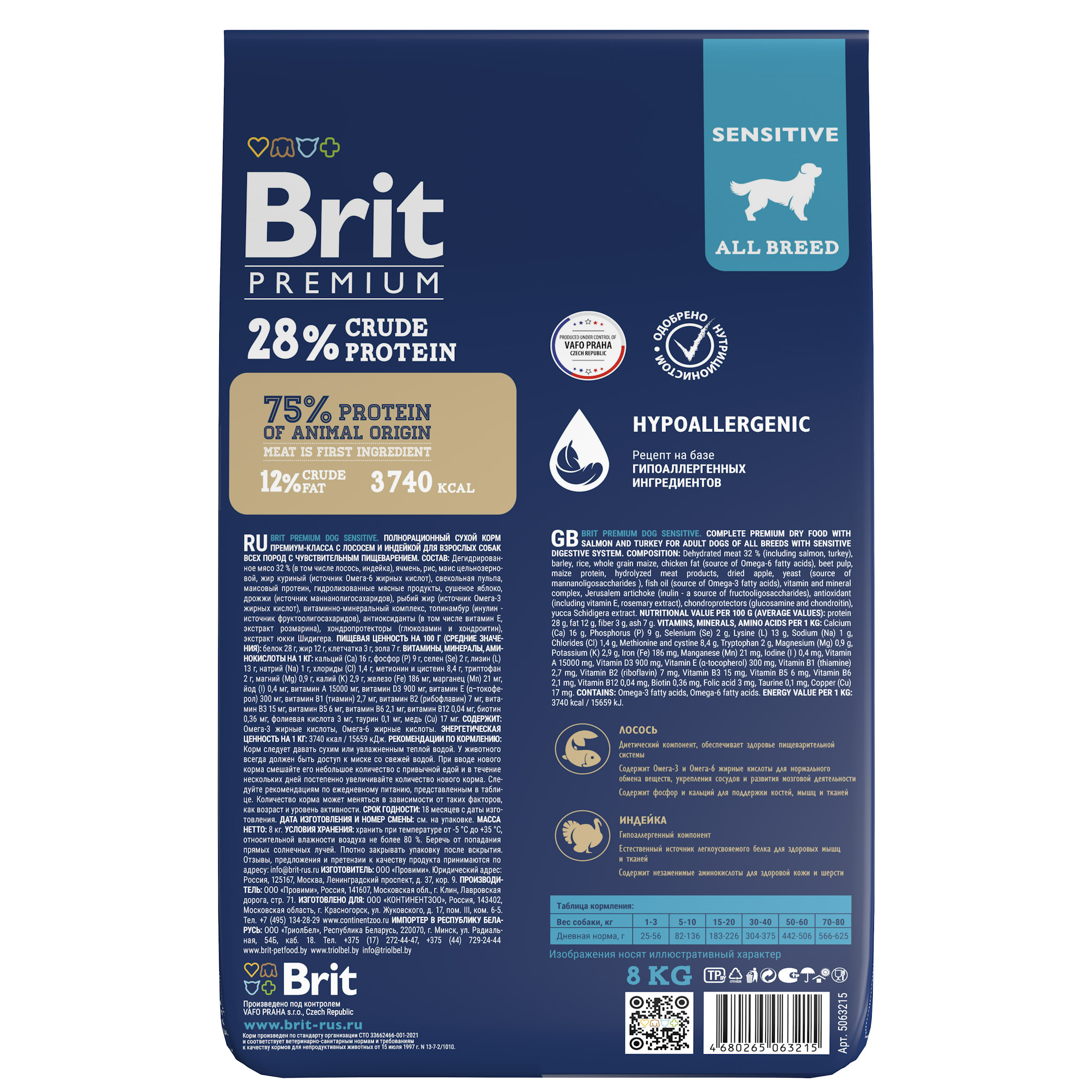 BRIT PREMIUM, Сухой корм с лососем и индейкой для собак "Dog Sensitive", 8 кг, 5063215