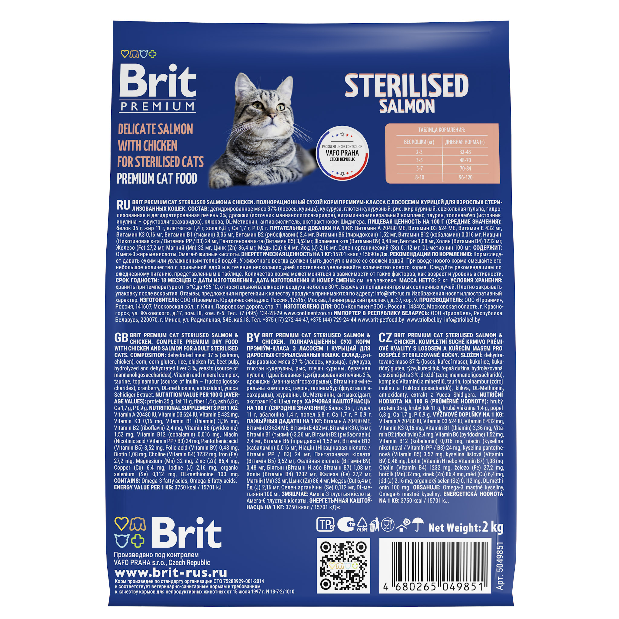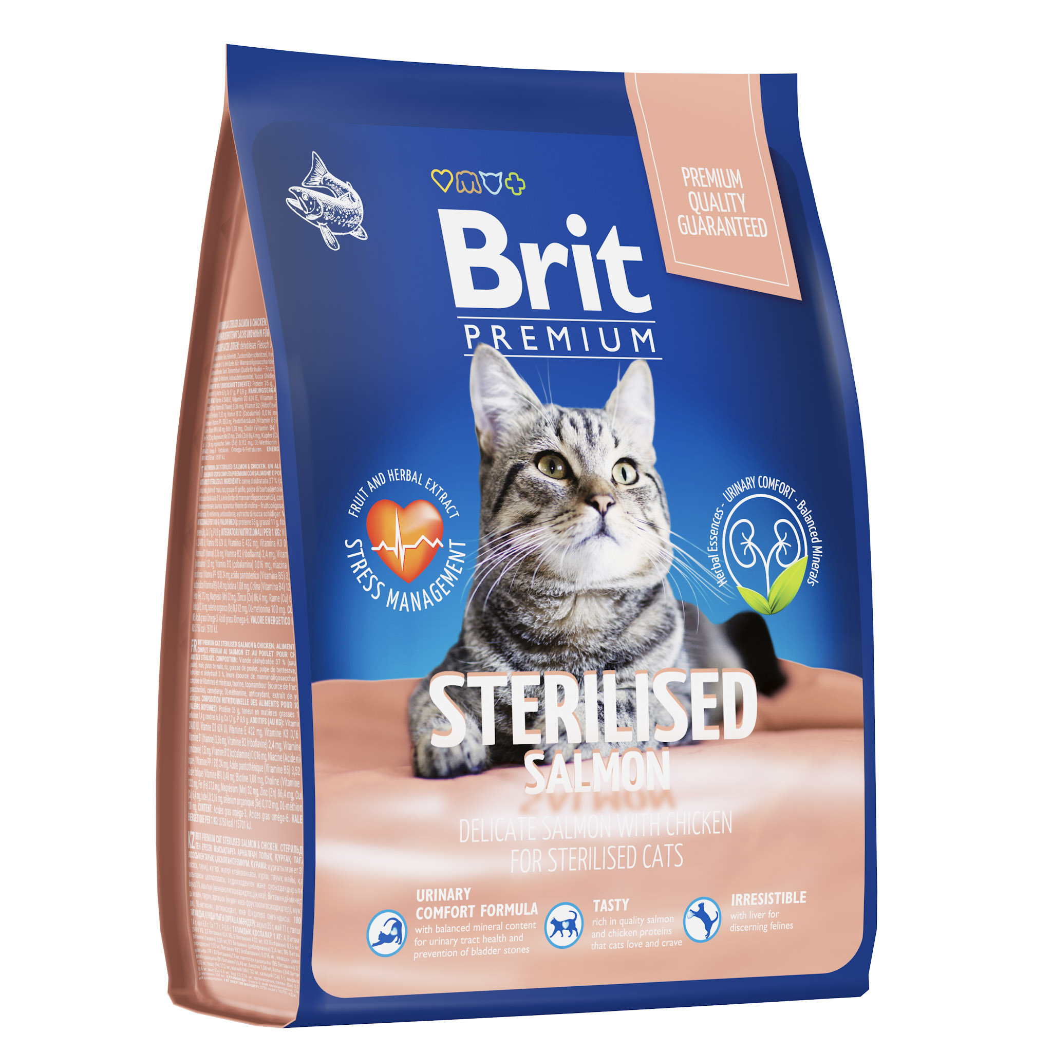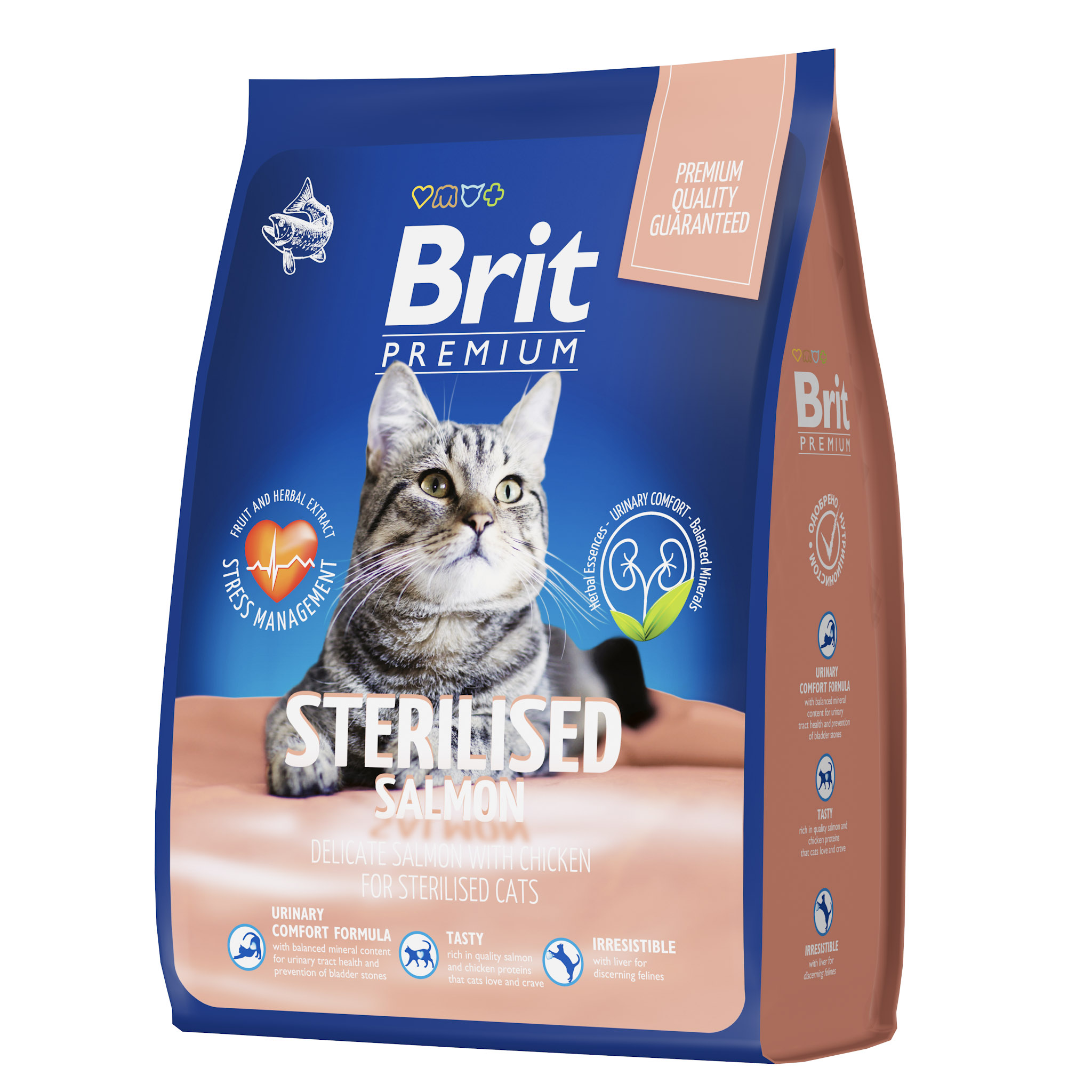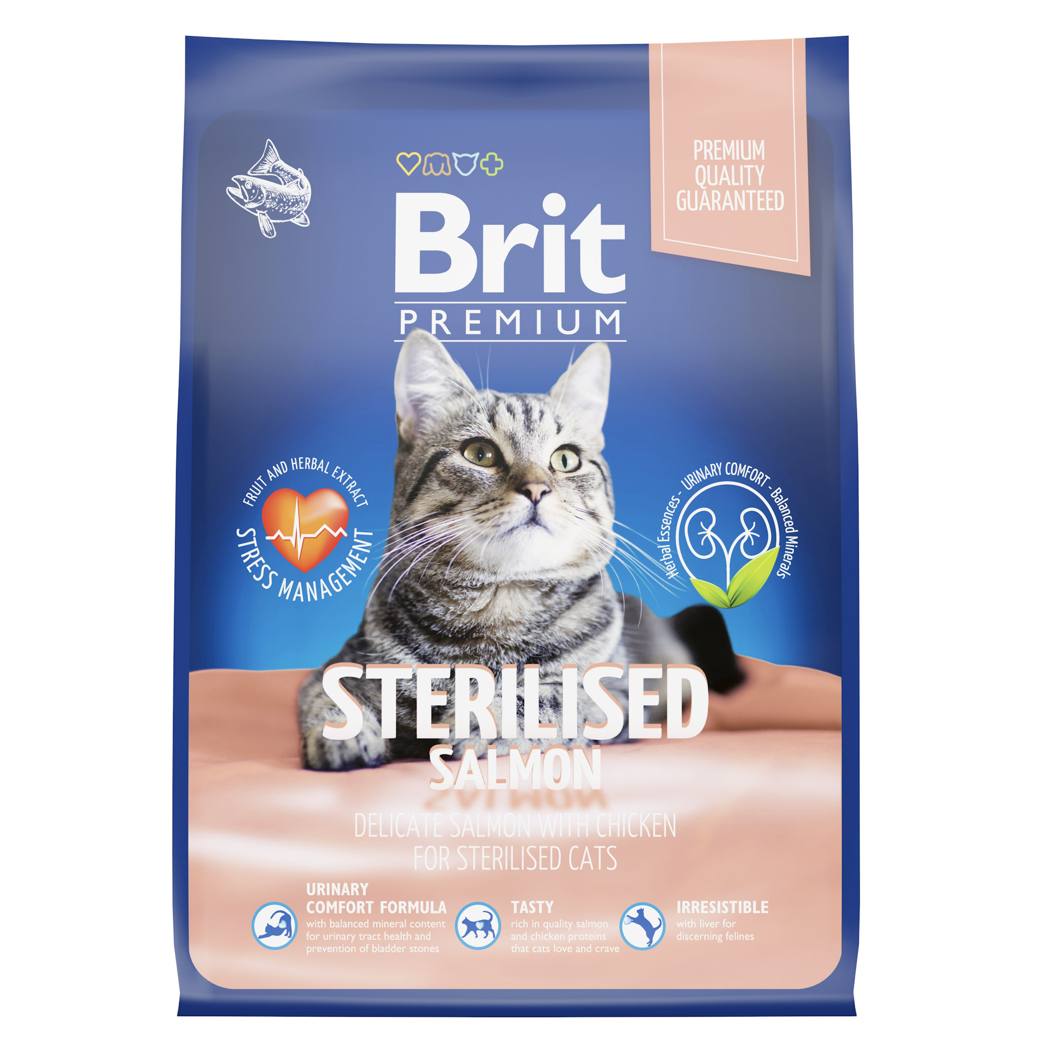 BRIT PREMIUM, Сухой корм с лососем и курицей для кошек "Cat Sterilised Salmon&Chicken", 2кг, 5049851