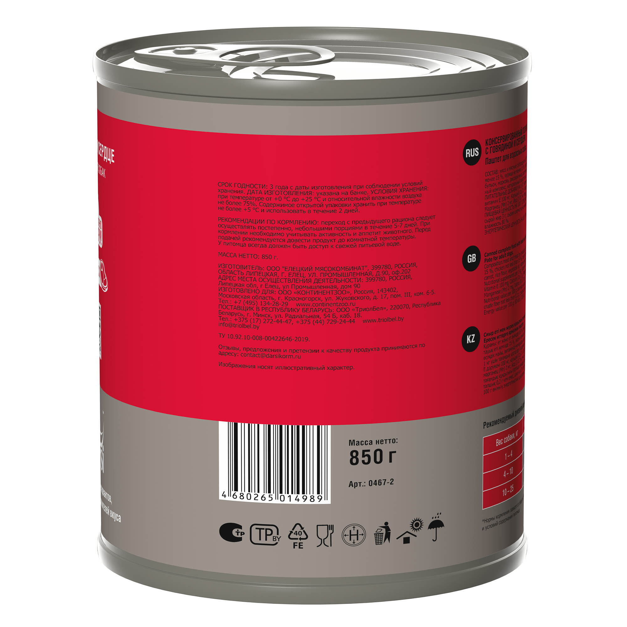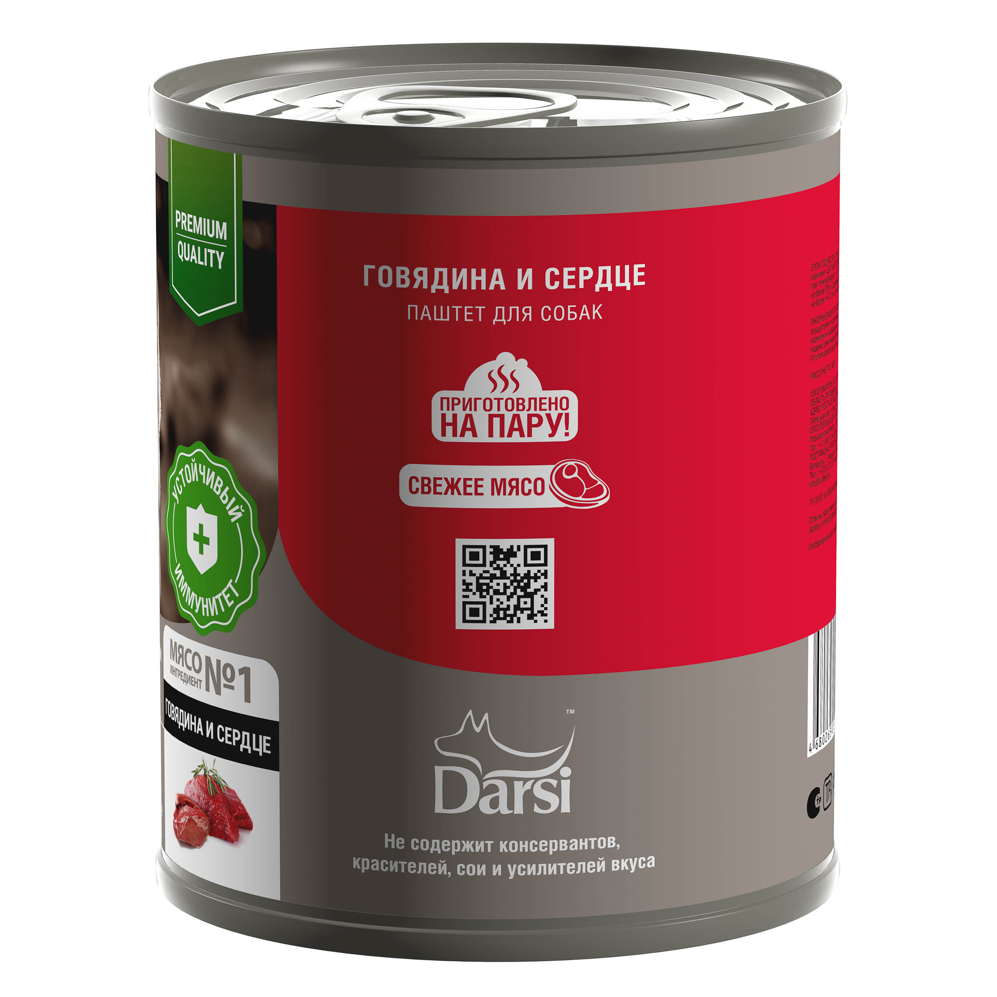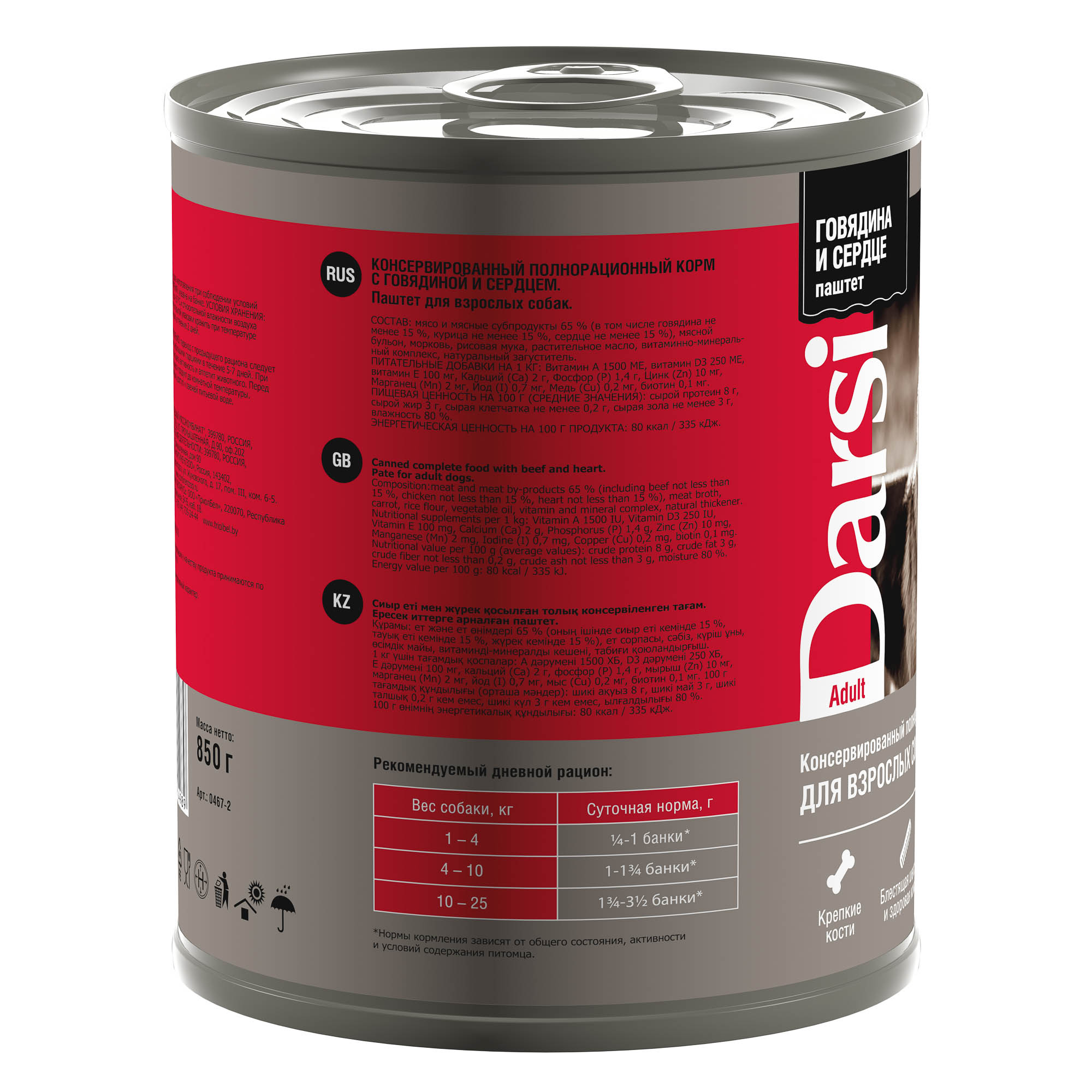 DARSI, Консервы для взрослых собак, Паштет Говядина с Сердцем, 850 г, 0467-2