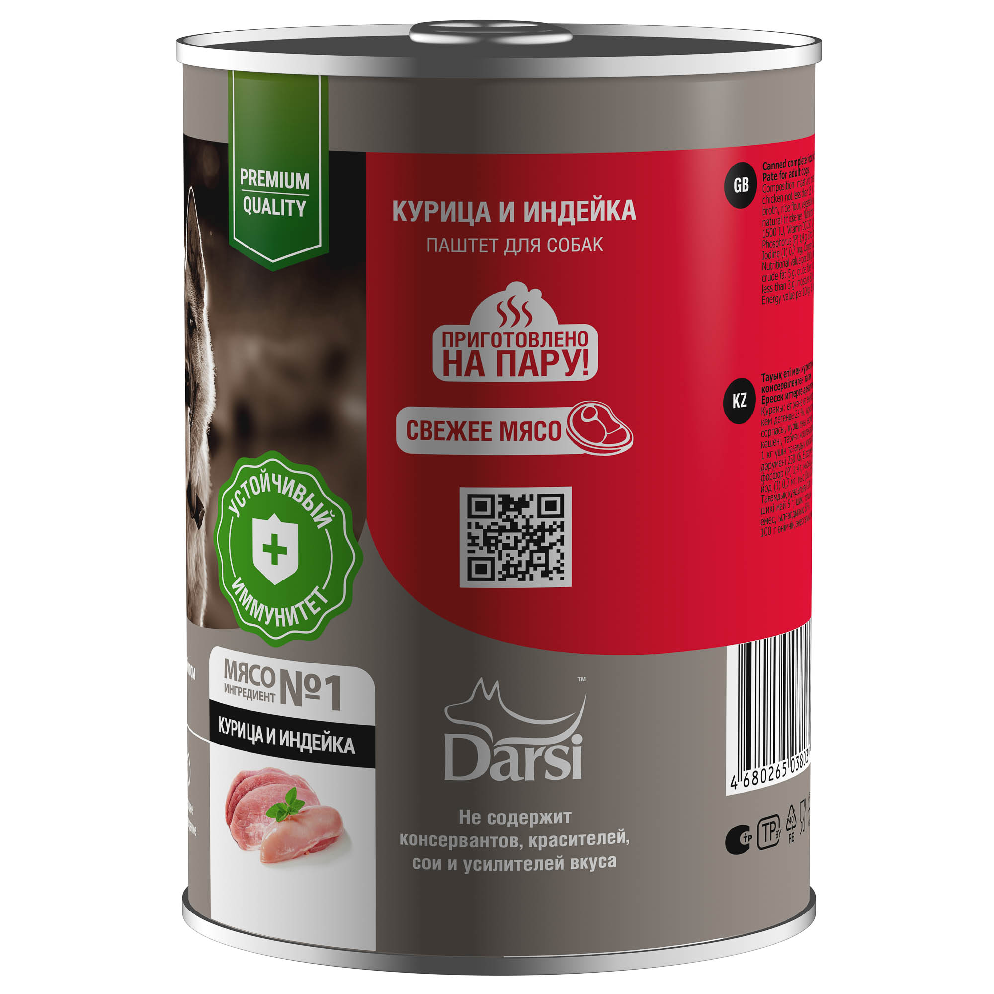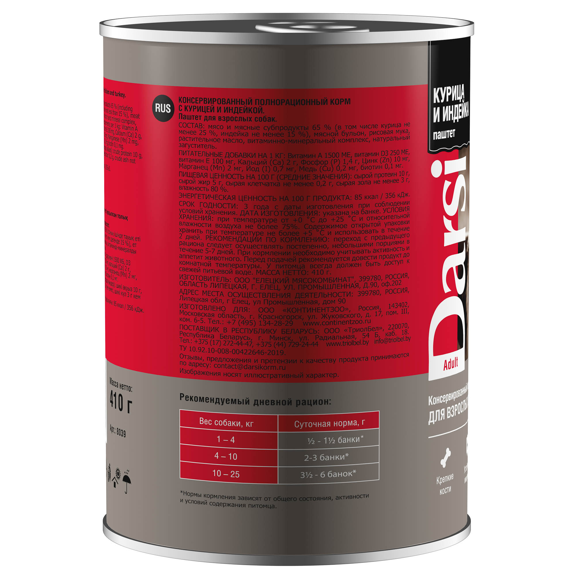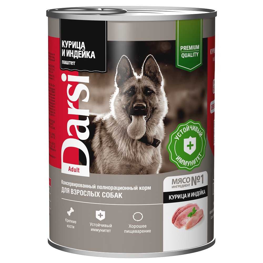 DARSI, Консервы для взрослых собак, Паштет Курица и Индейка, 410 г, 8039