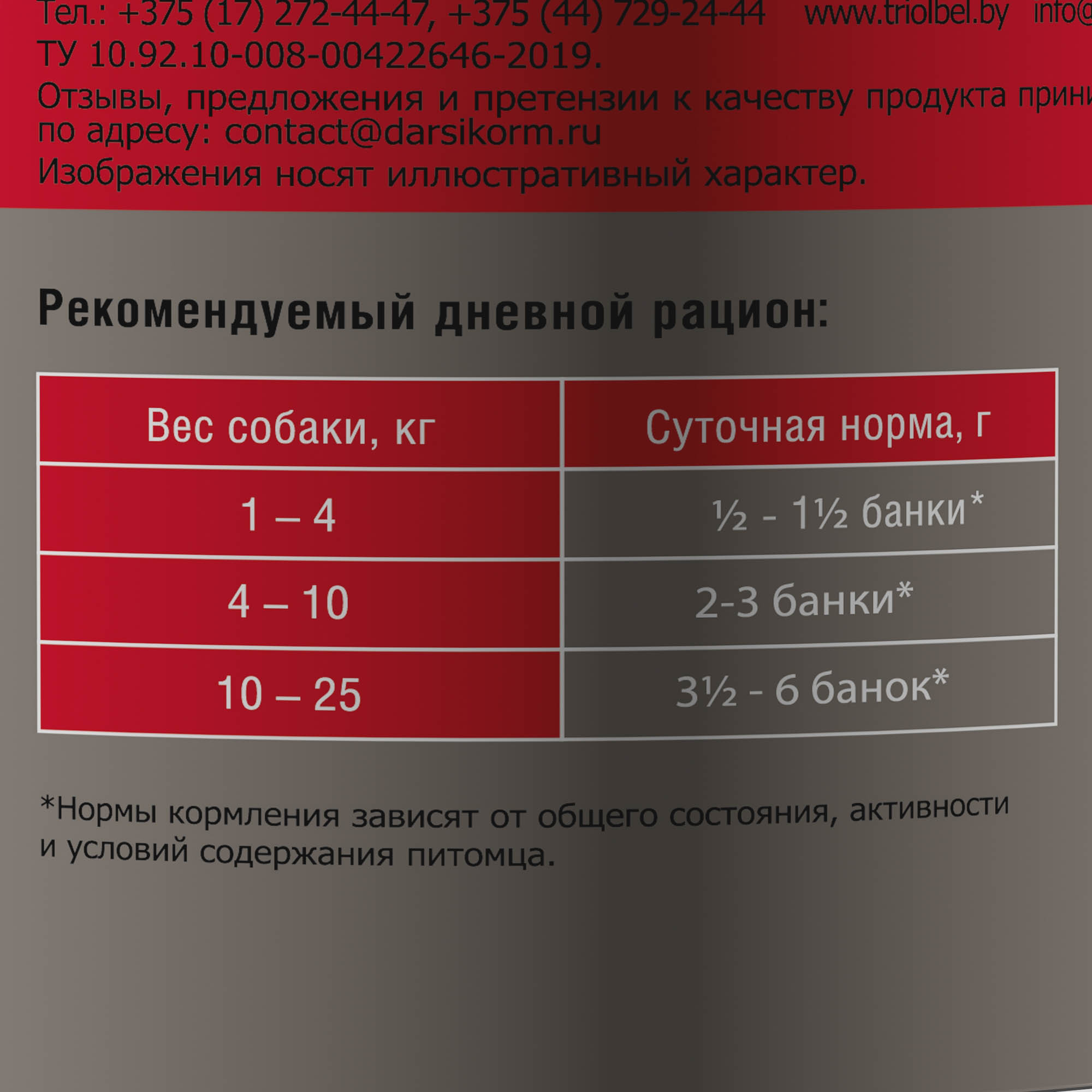 Ингредиенты в составе консервов Darsi «Курица и индейка» для взрослых собак: