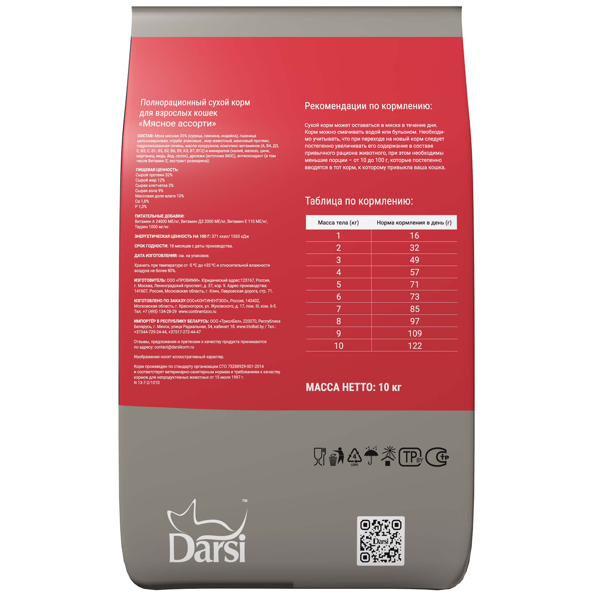 DARSI, Сухой корм для кошек, Adult, Мясное ассорти, 10 кг, 37179