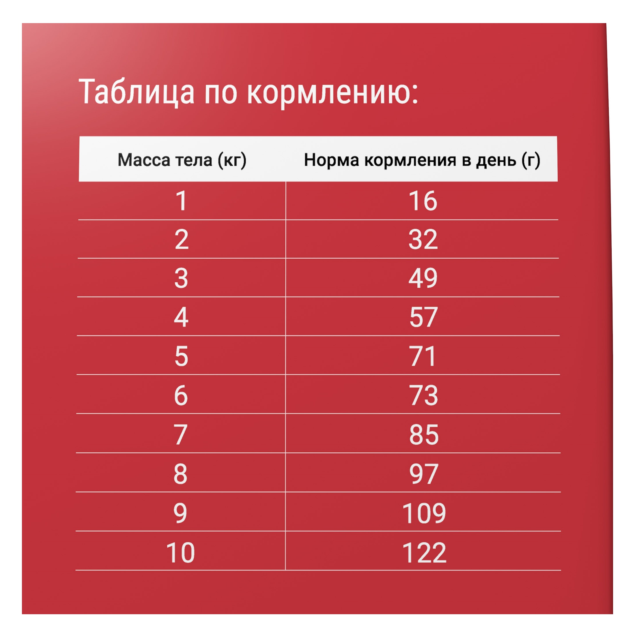 Питательные добавки: Витамин А 24000 МЕ/кг, Витамин Д3 2000 МЕ/кг, Витамин Е 110 мг/кг, таурин 1000 мг/кг.