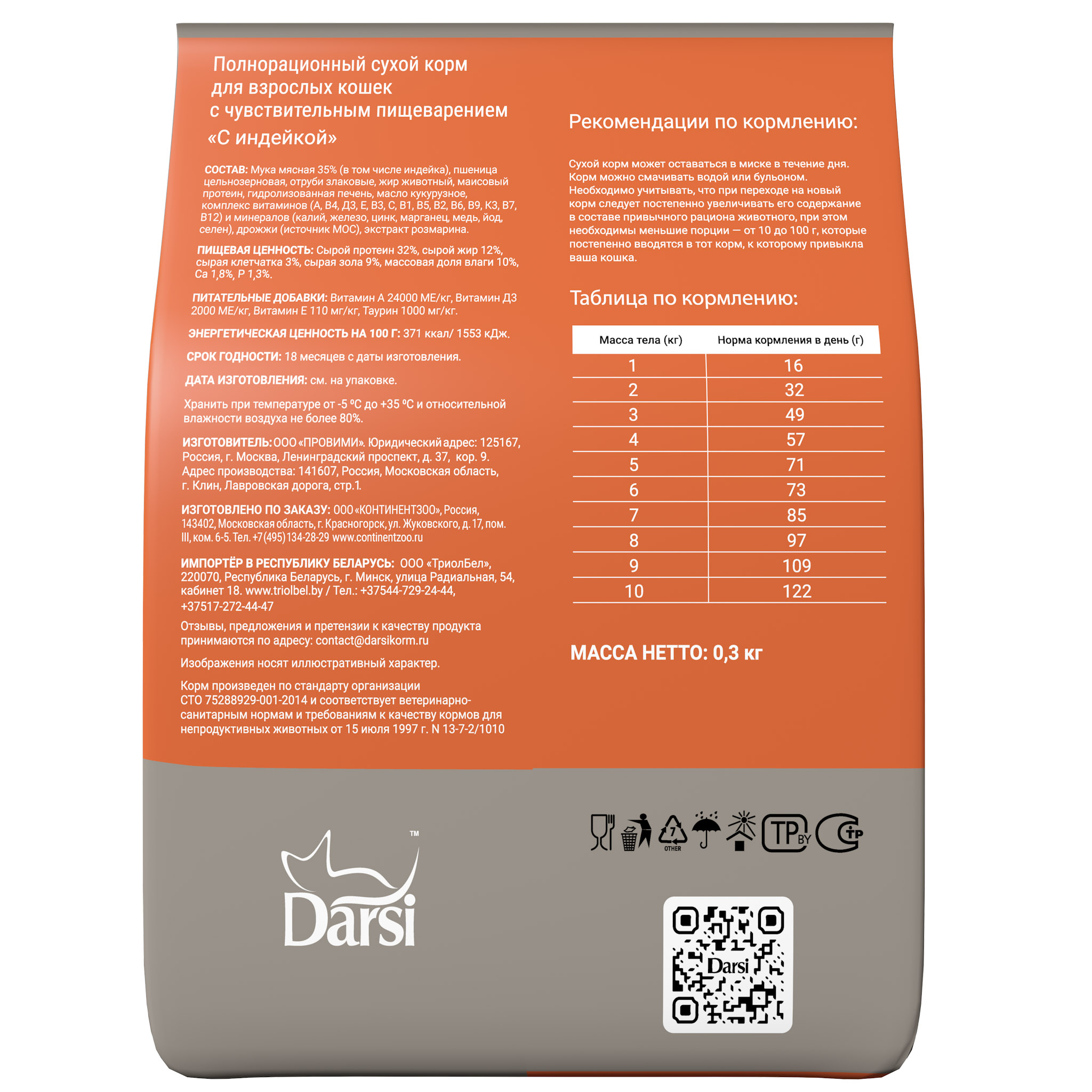 DARSI, Сухой корм для кошек, Sensitive, Индейка, 0.3 кг, 37131