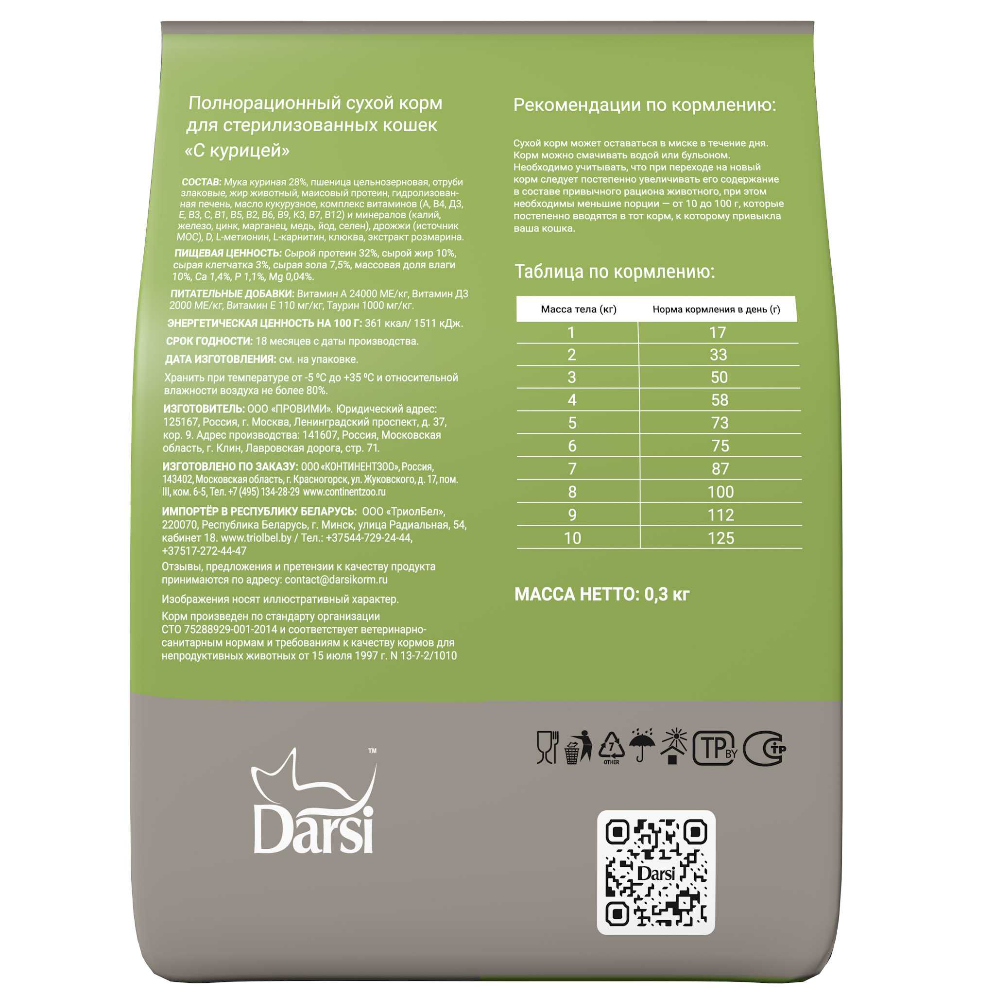 DARSI, Сухой корм для кошек, Sterilised, Курица, 0.3 кг, 37124