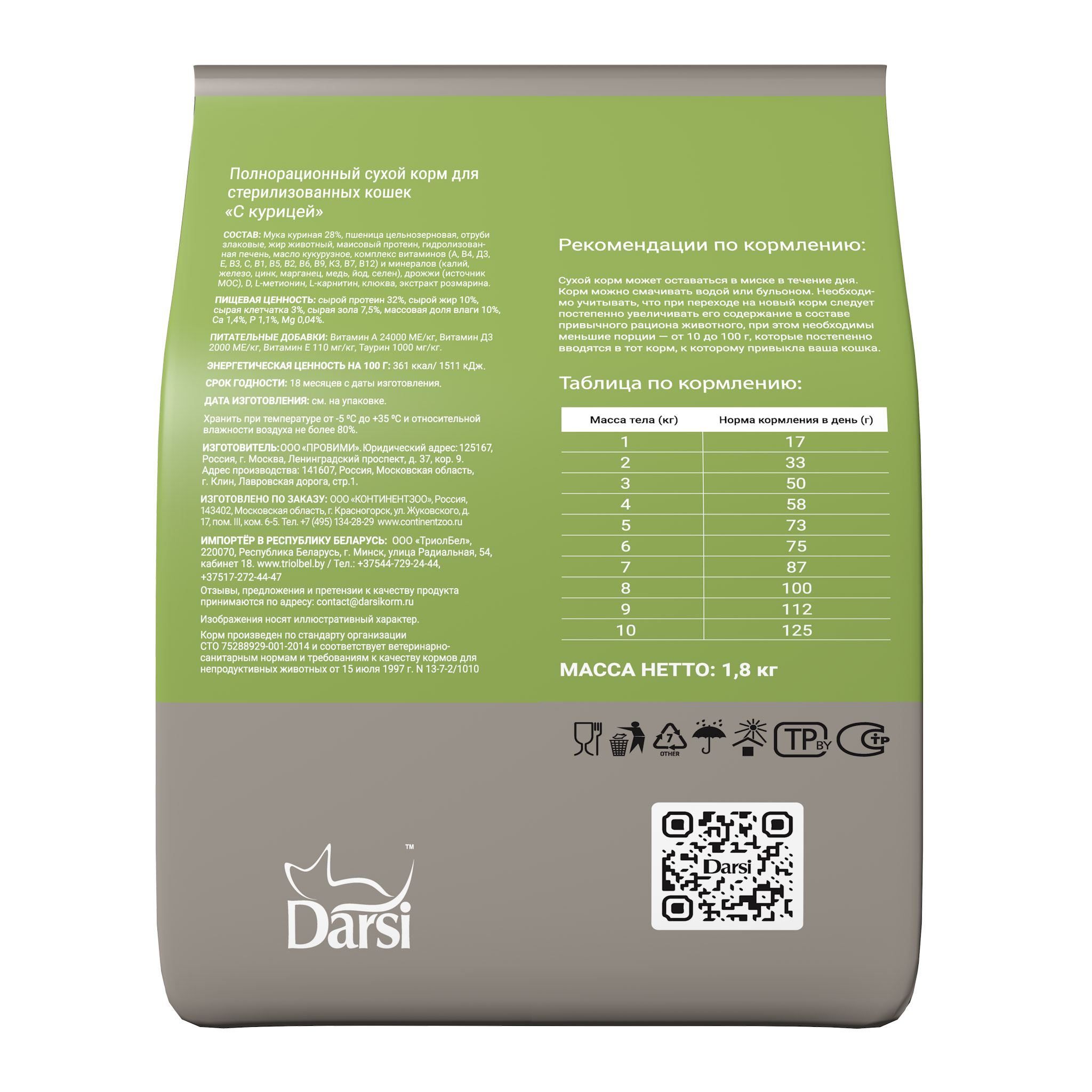 DARSI, Сухой корм для кошек, Sterilised, Курица, 1.8 кг, 37155