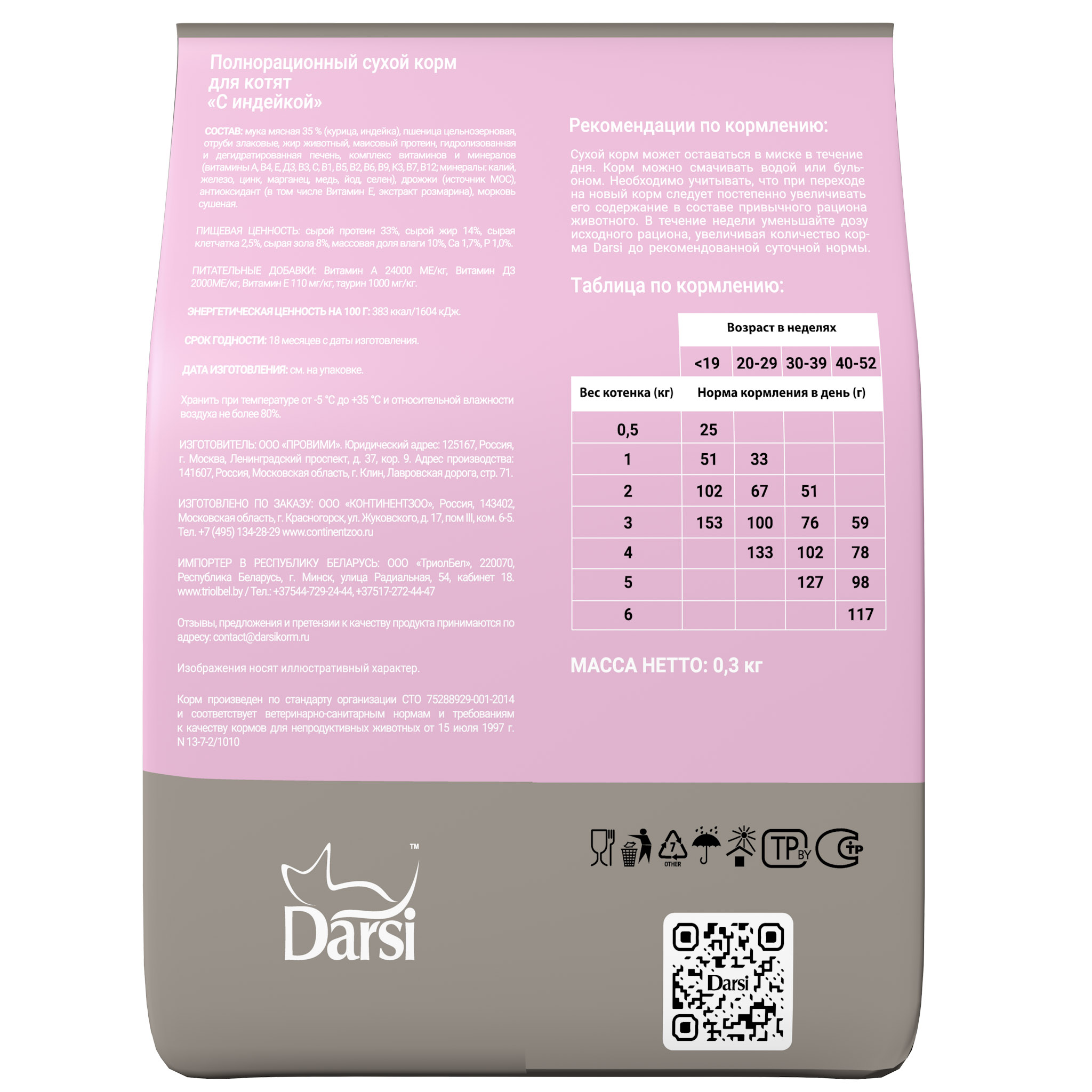 DARSI, Сухой корм для котят, Kitten, Индейка, 0,3 кг, 63321
