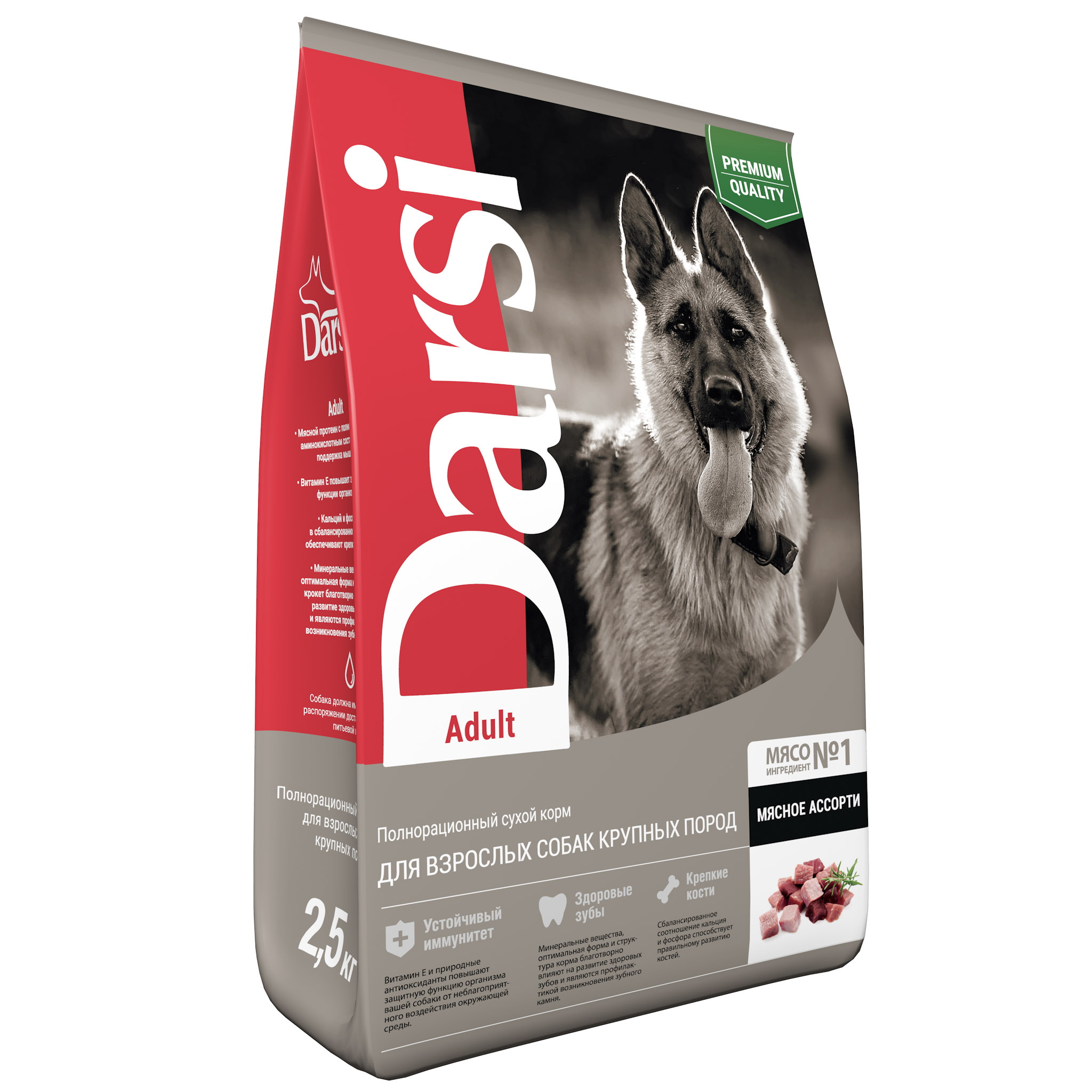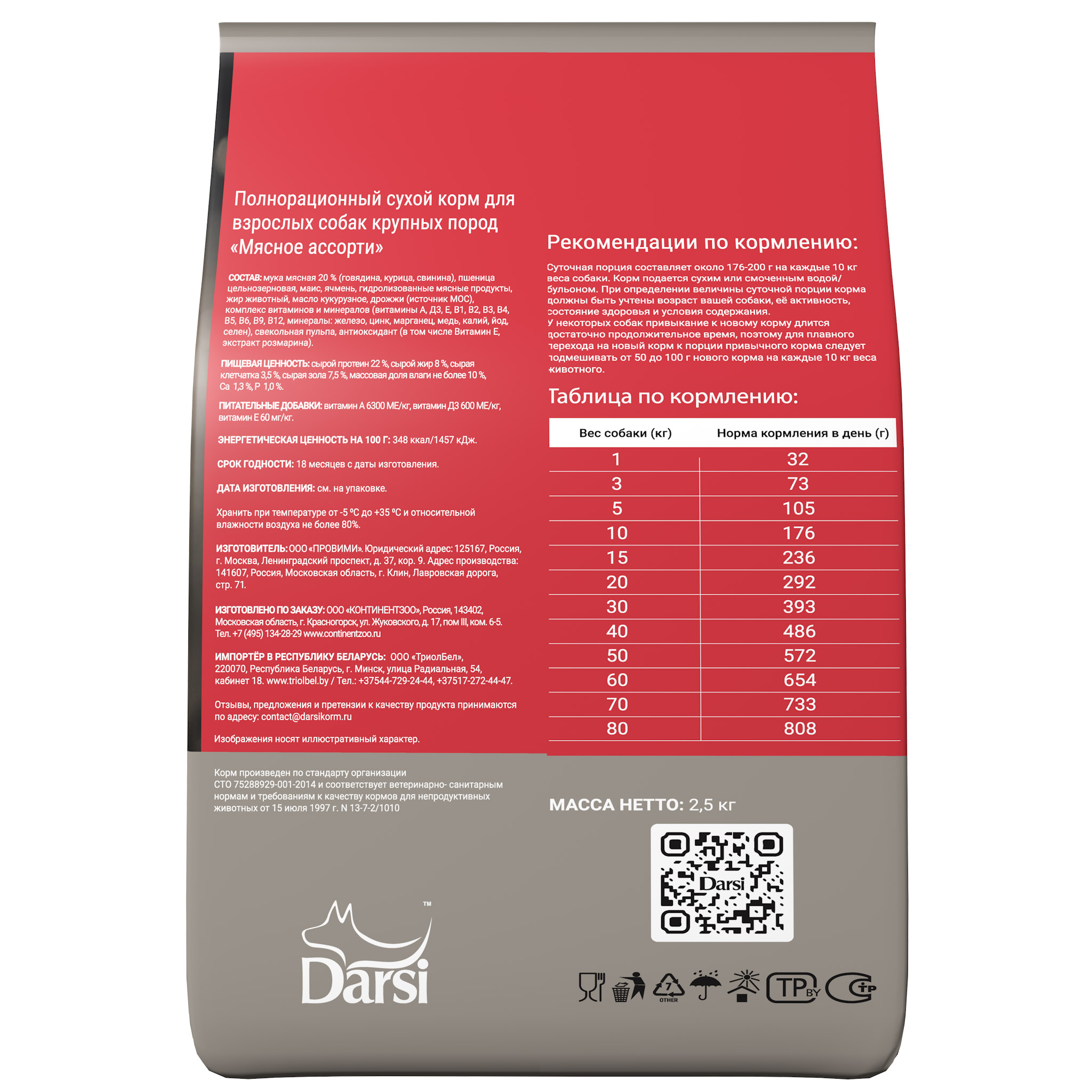DARSI, Сухой корм для взрослых собак крупных пород, Adult, Мясное ассорти, 2.5 кг, 37056
