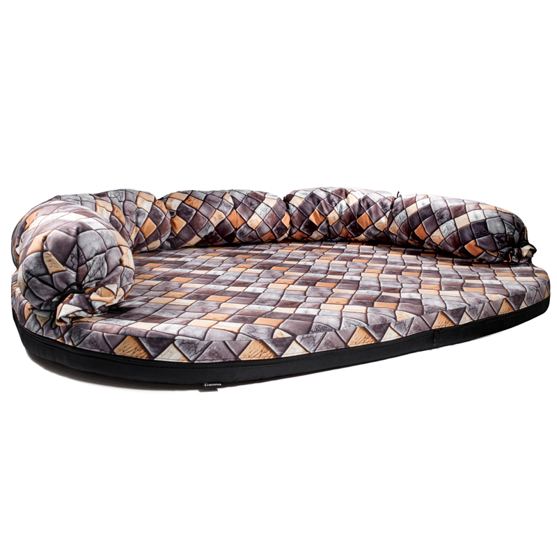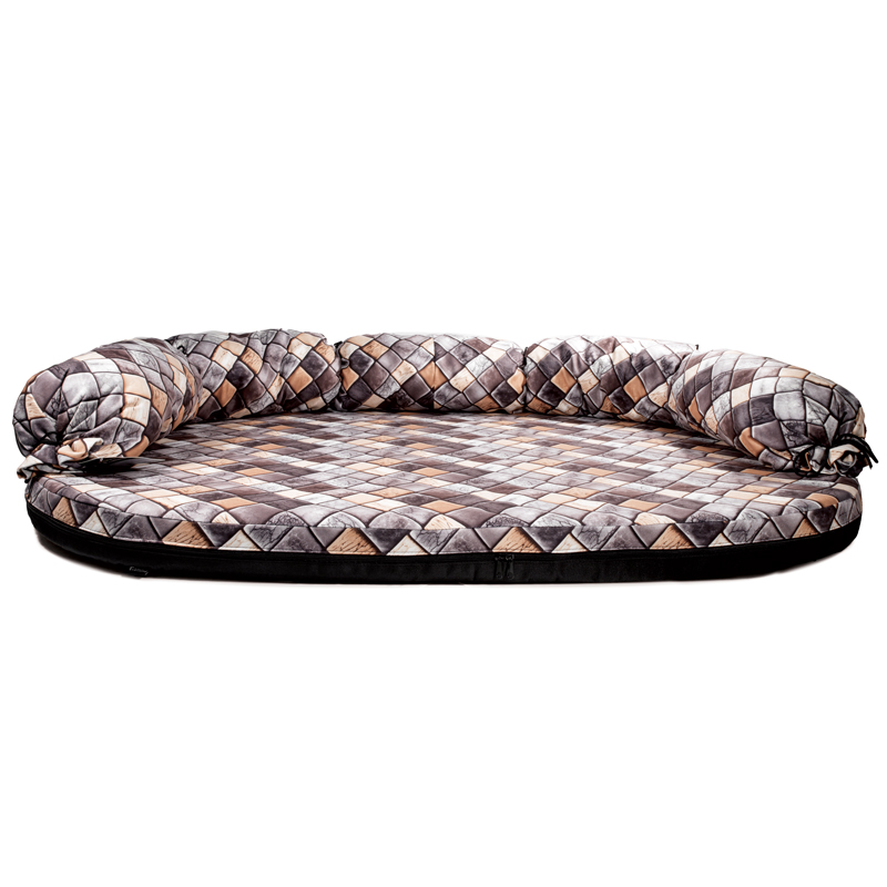 Велюровый диван высотой 8 см по переднему краю и удобной спинкой (23 см). Поролоновая основа делает изделие легким и удобным в эксплуатации. Съемный чехол на молнии удобно снимается и легко стирается, а мягкая боковая подушка фиксируется на шнурках. Размер изделия: 1340*1000*250мм. Цвет: разноцветный.
