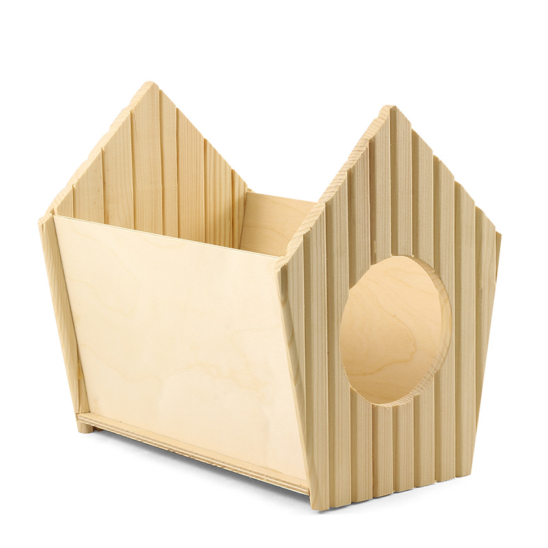 Большой деревянный домик идеально подходит для купания шиншилл. Крыша легко снимается, обеспечивая удобный доступ для уборки и подсыпания песка. Крупное отверстие обеспечивает свободный проход внутрь изделия. Домик изготовлен из натурального дерева высшего качества, без скобок и гвоздей, без окрашивания, поэтому его легко можно раскрасить или декорировать на свой вкус. Габаритные размеры конструкции - 32х25,5х30 см.