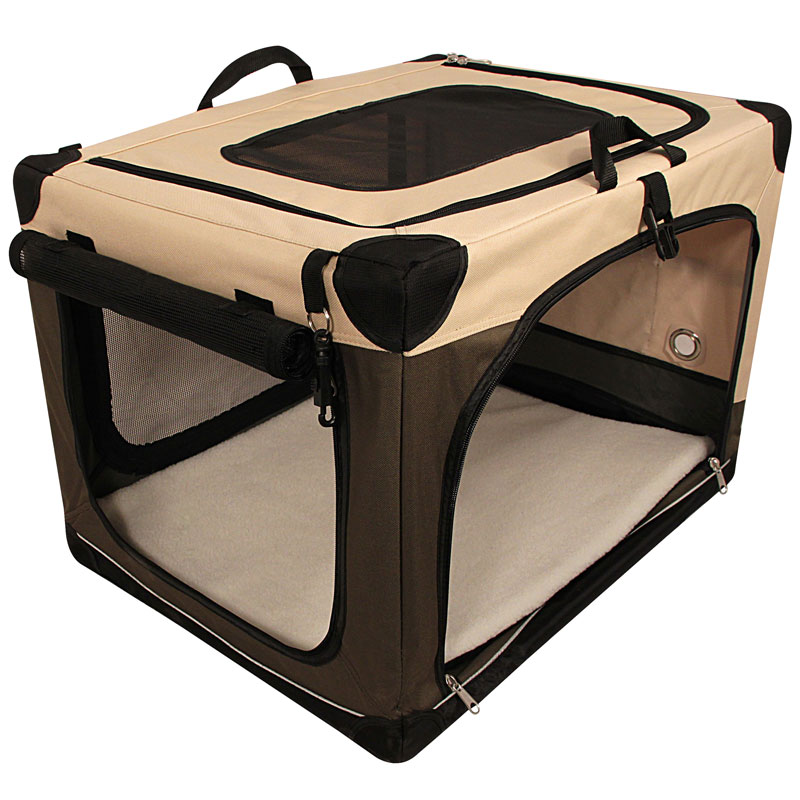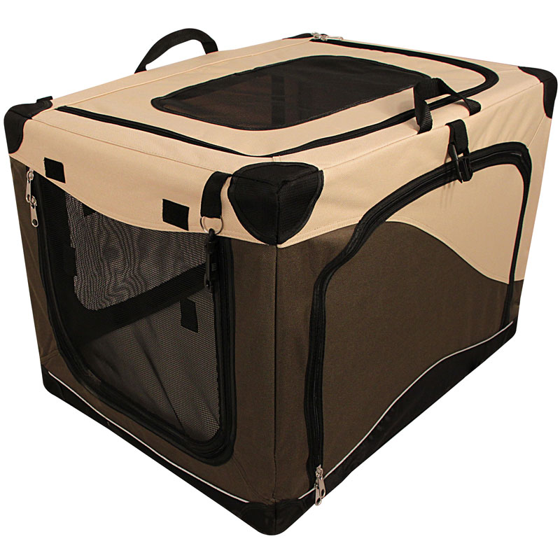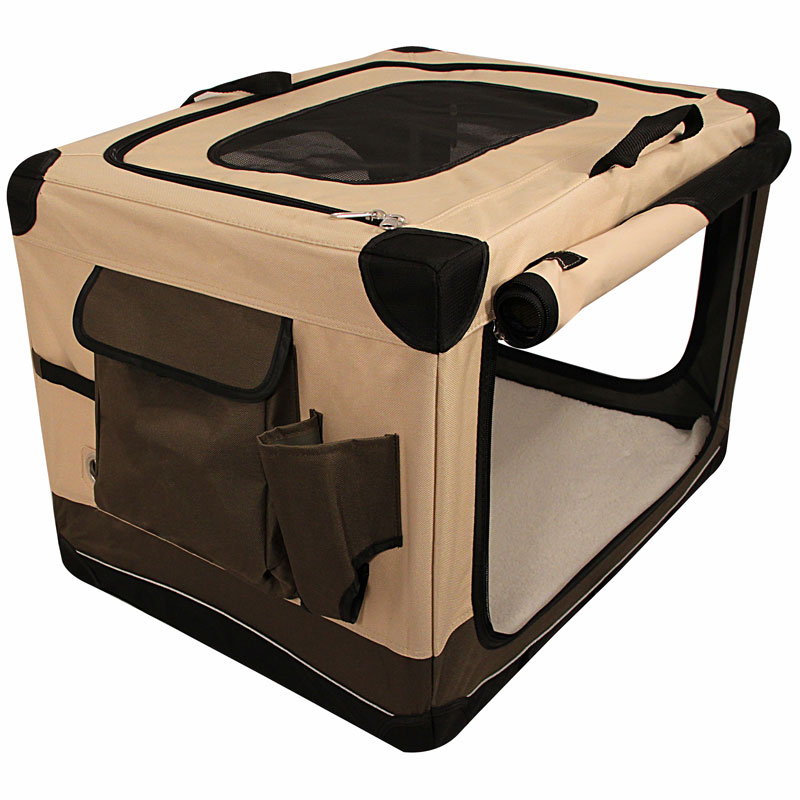 Складной дом-тент для животных - оптимальное решение для отдыха за городом, работы на выставках и для комфортной транспортировки питомца в автомобиле. Тент прямоугольной формы оснащен большим вентиляционным окном и просторным входом, которые легко закрываются на молнию. В комплекте изделия также есть съемная подстилка, очень удобная для отдыха животного. Тентовое покрытие изготовлено из прочного синтетического экоматериала, а сама конструкция легко складывается в удобную сумку, не занимая много места. Дно дома-тента изготовлено из водонепроницаемого материала. Цвет изделия: бежево-коричневый. Размер: 1060х710х685мм.