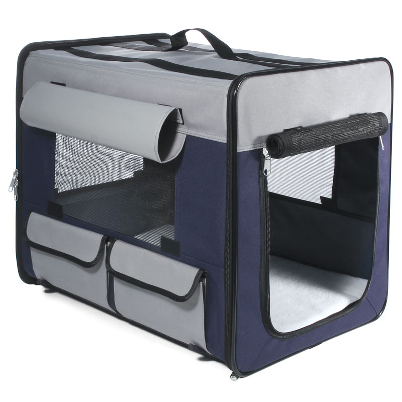 Удобный складной матерчатый тент - универсальное решение для владельцев собак. Его можно использовать как на улице, так и в помещении в качестве основного места для собаки. Незаменимым атрибутом дом-тент является для владельцев собак на выставках и при перевозке во время длительных путешествий. Удобный, легкий, устойчивый, вместительный и функциональный, он позволяет обеспечить животному максимально комфортные условия содержания. Тент имеет прорезиненные сетчатые окна со шторками и удобный матрас, утепленный искусственным мехом с одной стороны (зимний вариант) и с тонким покрытием с другой (летний вариант). Тентовое покрытие изготовлено из прочного синтетического экоматериала, а сама конструкция, укрепленная металлическим каркасом, легко складывается в удобную сумку, не занимая много места. Цвет: серо-синий. Размер: 790х535х660мм.
