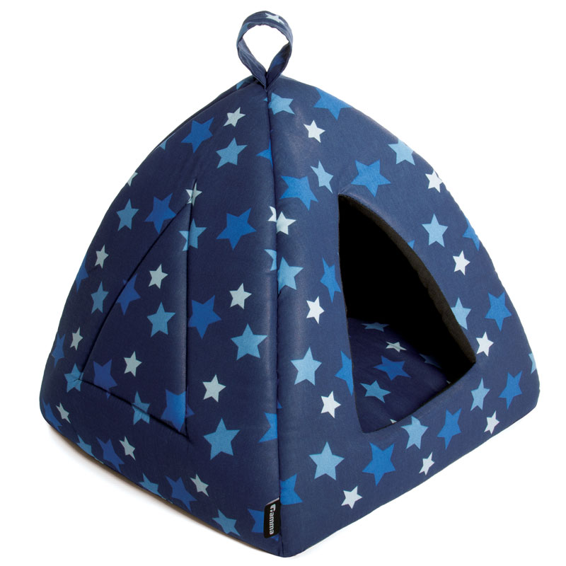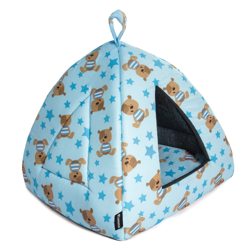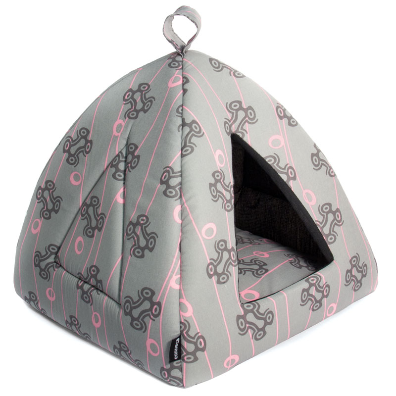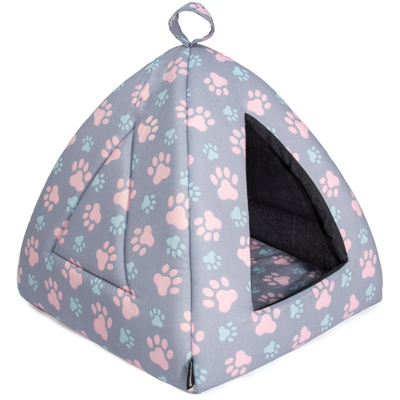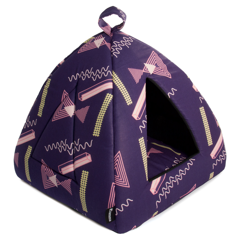 Оригинальный домик, визуально напоминающий виг-вам. Поролоновый каркас отлично держит форму. Внутри - съемная мягкая подушка. Размер изделия: 370*370*340мм. Цвета в ассортименте.