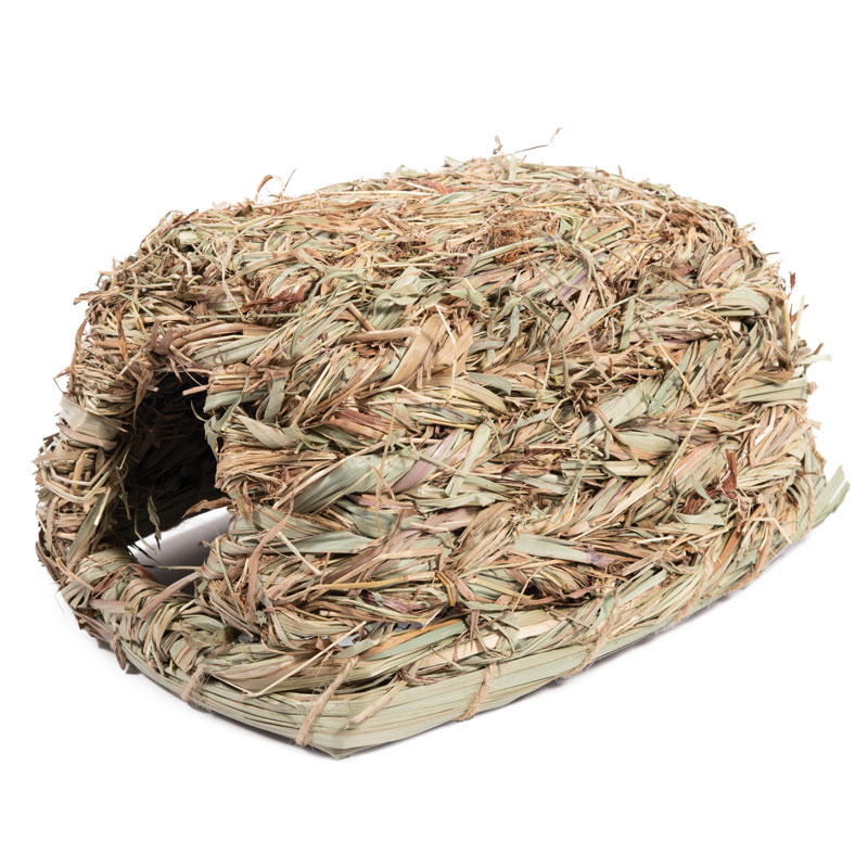 Функциональный домик-тоннель для мелких животных из луговых трав выполнен из сухих стеблей и листьев луговых трав. Домик имеет два отверстия, которые служат не только входами в домик, но и отличным поводом для активной игры. Изделие компактно, уютно для питомцев и долго сохраняет тепло за счет плотного плетения. Такой плетеный домик - идеальное место для комфортного отдыха домашнего грызуна и стильный декор для любой клетки. Цвет: соломенный. Размер: 270*180*140мм.