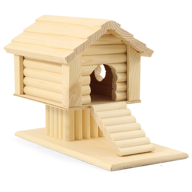 Деревянный домик-избушка на подставке для мелких грызунов: крыс, мышей, джунгариков, хомячков, песчанок и т.д. Несколько отверстий, в том числе большой вход и окошко, обеспечивают свободный доступ внутрь изделия. По лестнице зверек легко может забираться наверх, преодолевая препятствие высоты. Эта модель прослужит грызуну очень долго, т.к. она изготовлена из высококачественных материалов. В домике можно не только отдохнуть или подвигаться, но и поточить об него свои зубки. Изделие выполнено без окрашивания, поэтому его легко можно раскрасить или декорировать на свой вкус. Габаритные размеры конструкции 24х14,5х17,5 см отлично подходят для клеток небольших и средних размеров .