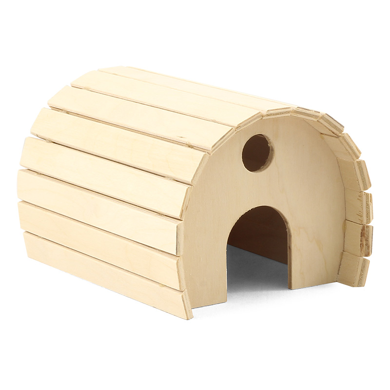 Деревянный домик цилиндрической формы для мелких грызунов: крыс, мышей, джунгариков, хомячков, песчанок и т.д. Несколько отверстий, в том числе большой вход и окошко, обеспечивают свободный доступ внутрь изделия. Крыша домика достаточно плотная - по ней зверек может забираться наверх. Эта модель прослужит грызуну очень долго, т.к. изготовлена из высококачественных материалов. В домике можно не только отдохнуть или подвигаться, но и поточить об него свои зубки. Изделие выполнено из фанеры высшего качества без окрашивания, поэтому его легко можно раскрасить или декорировать на свой вкус. Габаритные размеры конструкции 15х11,5х10 см отлично подходят для клеток средних размеров.