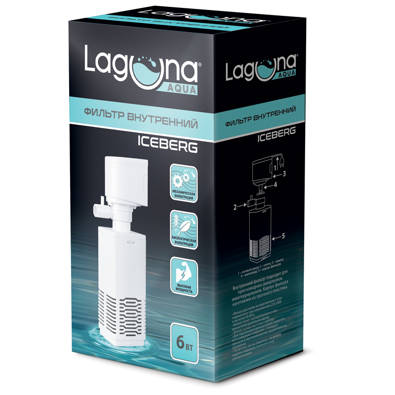 Фильтр JY500F внутренний, 6Вт, 500л/ч, до 180л, 80*50*180мм, серия ICEBERG, Laguna