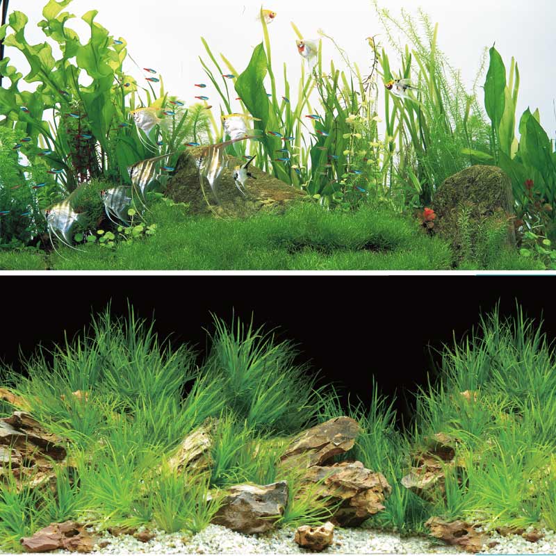 Двусторонний аквариумный метражный фон на ламинированной бумаге с красочными фотографиями подводного мира. В рулоне, длина 15м. Фон для аквариума - это тот самый декоративный элемент, который не только скроет за собой все внешнее аквариумное оборудование, но и придаст аквариуму привлекательный внешний вид. Пленочные фоны - идеальное решение для вашего аквариума. Пленка с рисунком либо однотонная пленка клеится на заднюю стенку снаружи, так что в любой момент ее можно заменить. Если сам по себе аквариум не имеет особой привлекательности, то его можно украсить фоном с изображением подводного ландшафта. Если же дизайн аквариума не подразумевает применение цветного фона, идеальным решением будет однотонная пленка.