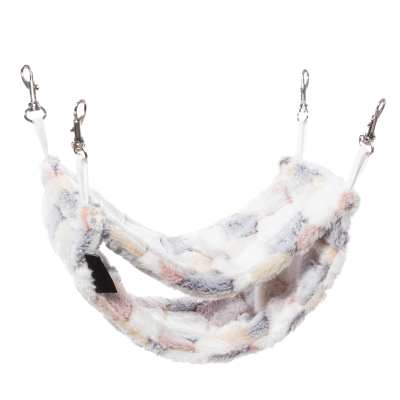 Двухъярусный гамак "Шалаш" для мелких животных обязательно понравится вашему питомцу. Выполнен из мягкого плюшевого материала. Легко подвешивается в клетке при помощи карабинов. Цвет: разноцветный. Размер гамака: 230*100*20мм.