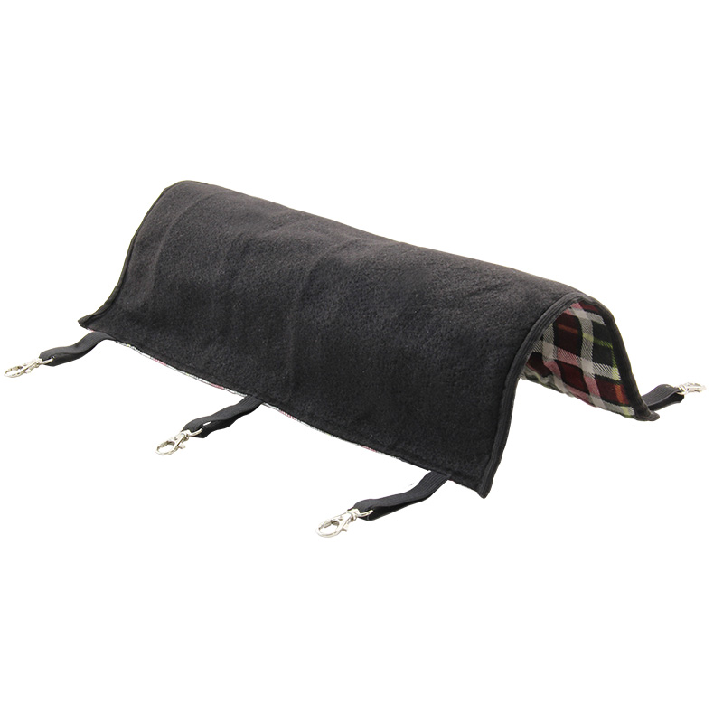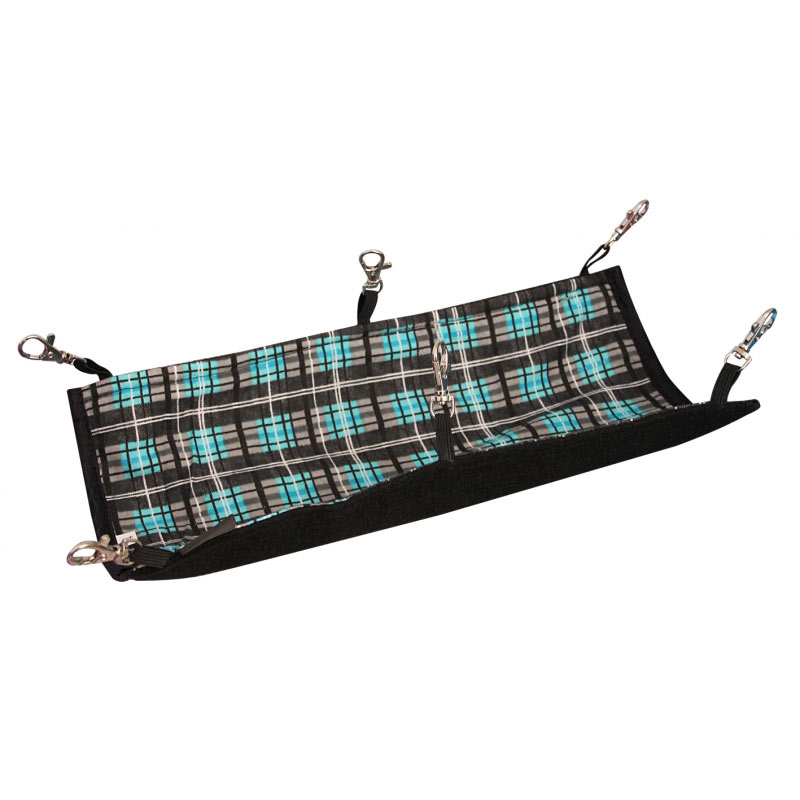 Гамак размерами 20х34 см изготовлен из качественной фланелевой ткани с наполнением из прессованного синтепона, благодаря чему он мягкий, теплый и уютный. Изделие оборудовано шестью прочными карабинами, при помощи которых его можно зафиксировать в необходимом положении внутри клетки любых габаритов. В таком гамаке вашему любимцу будет максимально комфортно: он сможет скрыться от глаз и спокойно поспать в мягкой лежанке. Изделие легко стирается как вручную, так и с помощью стиральной машинки. Варианты расцветок лицевой стороны - в большом ассортименте.