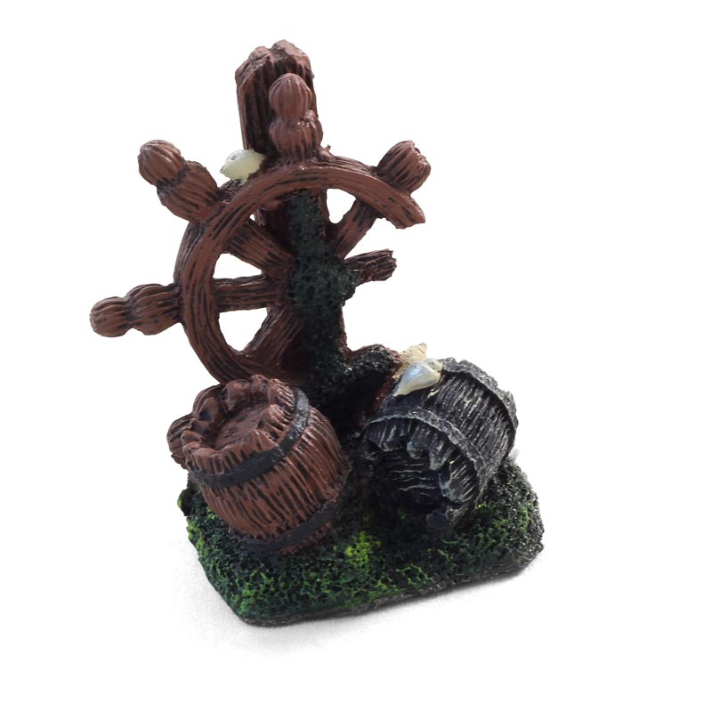 Этот реалистичный грот в виде затонувшего штурвала - незаменимый элемент для оригинального оформления очень маленьких пресноводных аквариумов ("нано-аквариумов"). С помощью маленьких гротов можно оформить небольшой объем так же интересно и оригинально, как и большой аквариум. Этот грот послужит дополнительным укрытием для небольших рыб и ракообразных, отвечая тем самым не только за эстетику, но и принося обитателям аквариума реальную пользу. Изготовленный из нетоксичной полиэфирной смолы, очень прочный и долговечный, удобный в эксплуатации и совершенно безвредный для аквариумных жителей, этот грот прослужит вам долгие годы, украшая собой ваш "компактный подводный мир" - на радость вам и его обитателям.
