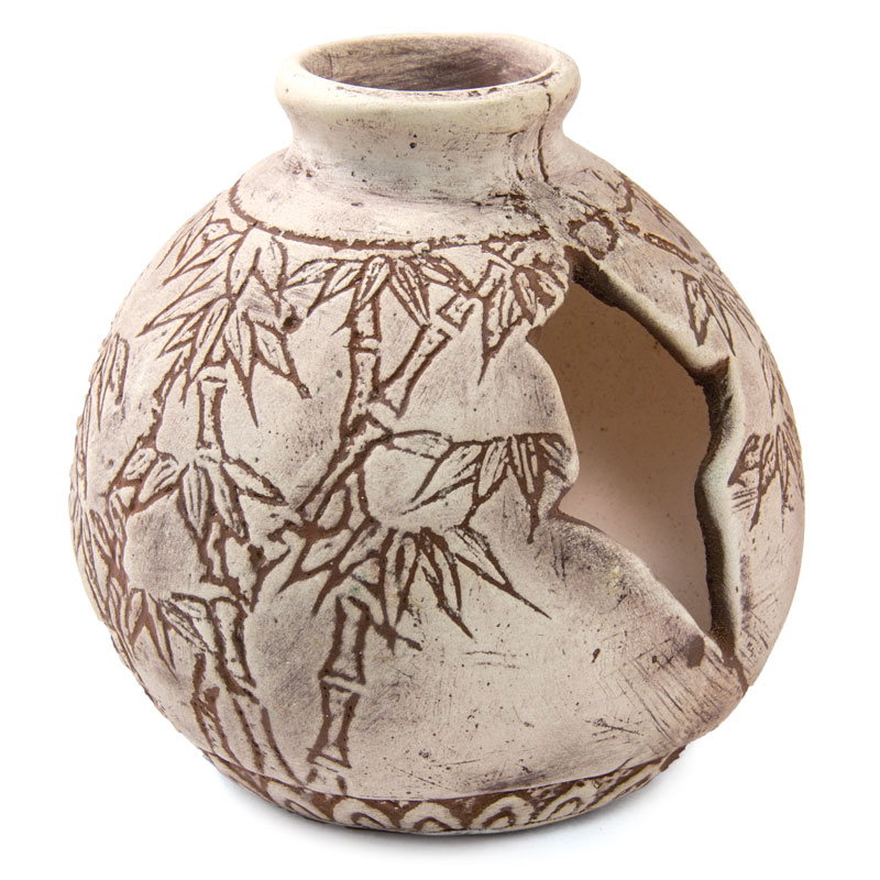 Аквариумная декорация из экологически чистой обожженной неглазурованной глины, раскрашенная вручную. Для пресноводных аквариумов.